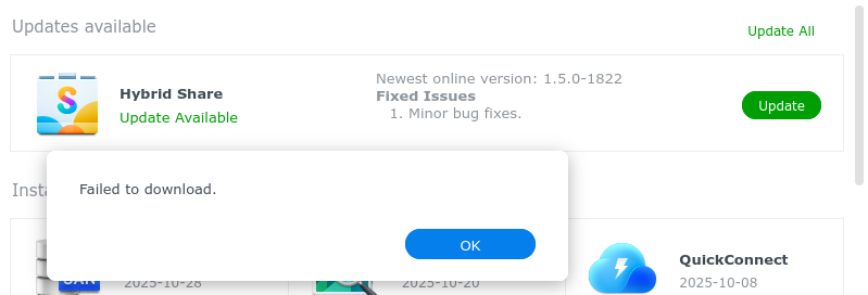 Oh, look, updates for #Synology #NAS packages depend on #Cloudflare.