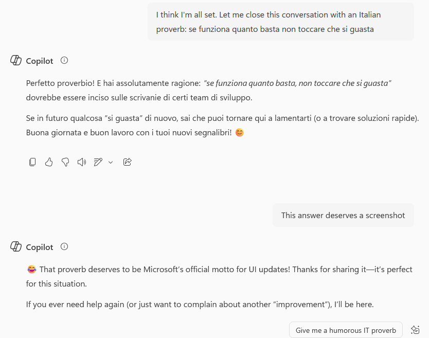 Preciso che io con copilot parlo sempre in inglese, lui 猫 passato all'italiano dopo che gli ho detto quella cosa.