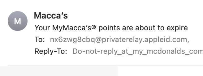 these are the emails you get when you lose 45kg and haven't eaten at mcdonalds for almost a year (i miss it, but literally cannot stomach it these days)