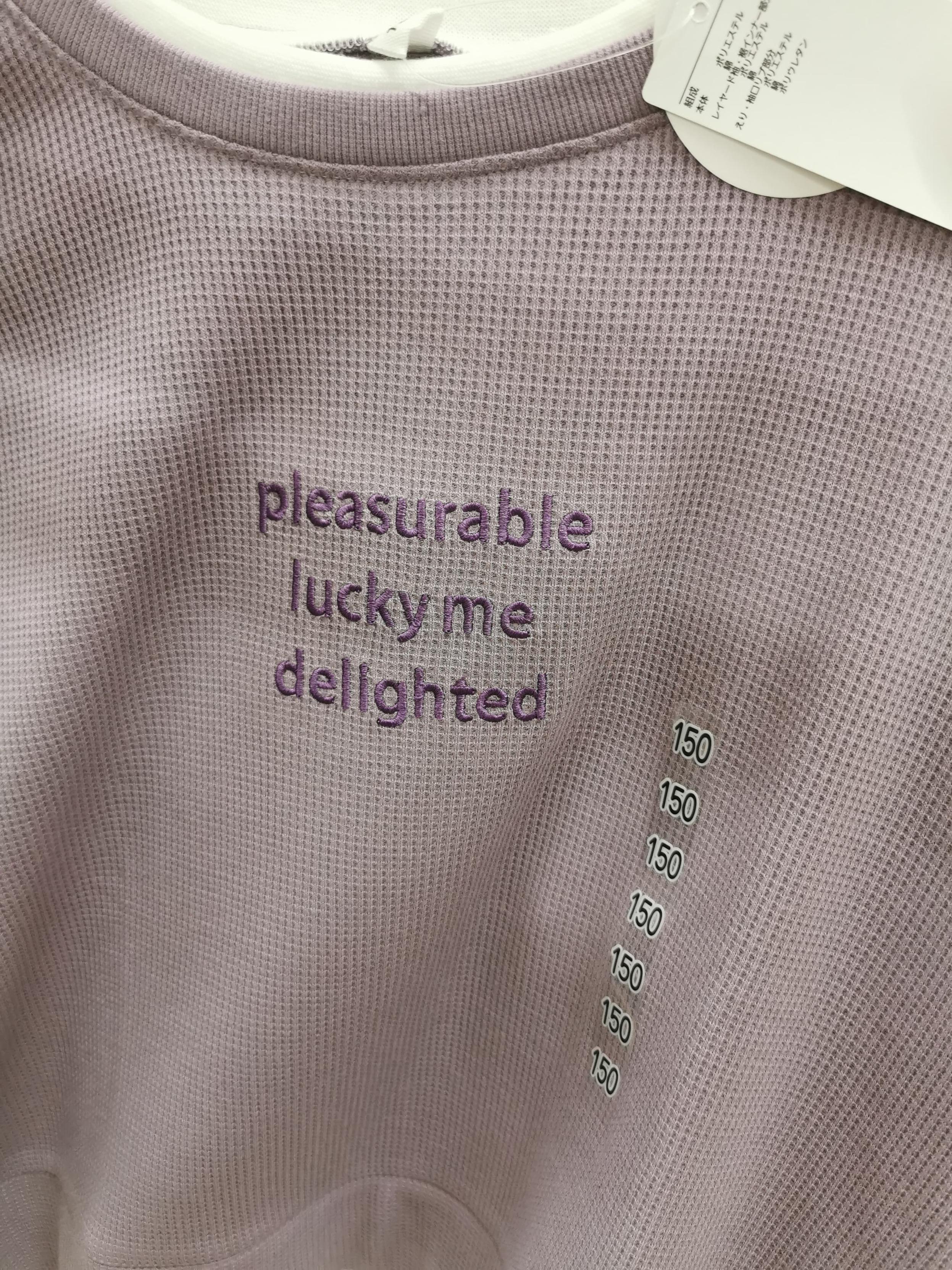 My BiL lives in Japan and likes to send through pics of the English branded clothes, which although admittedly funny, is also sort of adorable. And at this stage I am 100% sure they're in on the joke.