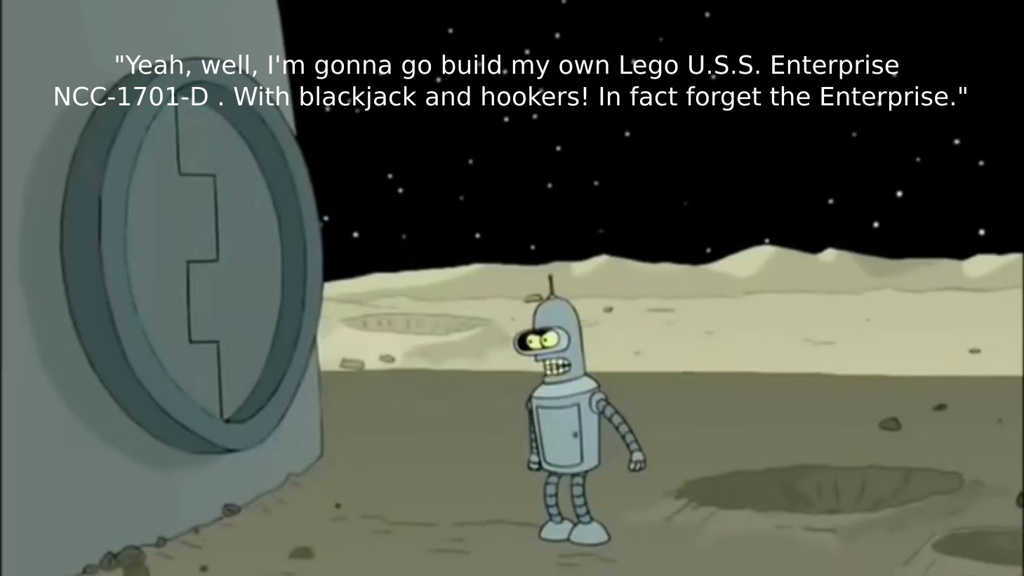 "Yeah, well, I'm gonna go build my own Lego U.S.S. Enterprise NCC-1701-D . With blackjack and hookers! In fact forget the Enterprise."