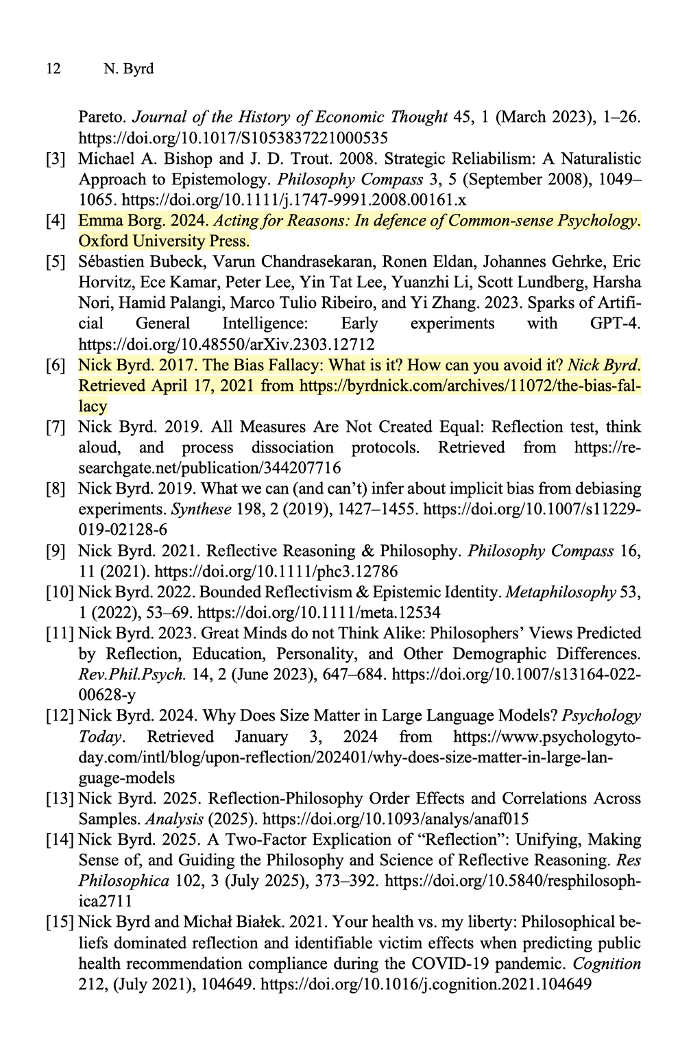 "Regarding rational thinking skills, there were no significant differences between t1 and t2 in the means of cognitive reflection (t(119) = 1.73, p =.086, d = 0.16; all means are depicted in Table 1), resistance to belief bias (t(123) = 0.53, p =.598, d = 0.05), resistance to ratio bias (t(123) = −0.64, p =.521, d = −0.06), and disjunctive reasoning (t(119) = −0.31, p =.756, d = −0.03). Regarding rational thinking dispositions, there was no significant difference in consideration of future consequences between t1 and t2 (t(123) = 0.85, p =.395, d = 0.08). Interestingly, the mean scores of students’ need for cognition slightly, but significantly, declined from t1 to t2 (t(123) = −2.07, p =.040, d = −0.19). Overall, these results suggest that the students’ rational thinking skills and dispositions remained very stable over the course of two semesters in terms of both their absolute level and their relative ranking."