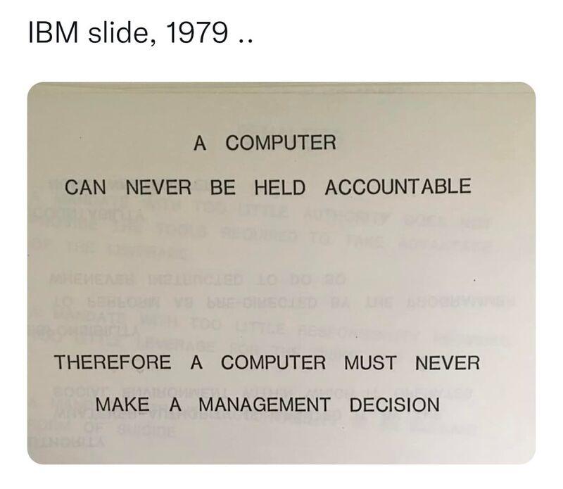 Le capitalisme nous vends des machines qui doivent nous assister. Mais ce sont les humains qui vont devenir les assistants des machines. Et qui recevront le blâme en cas d'erreur.