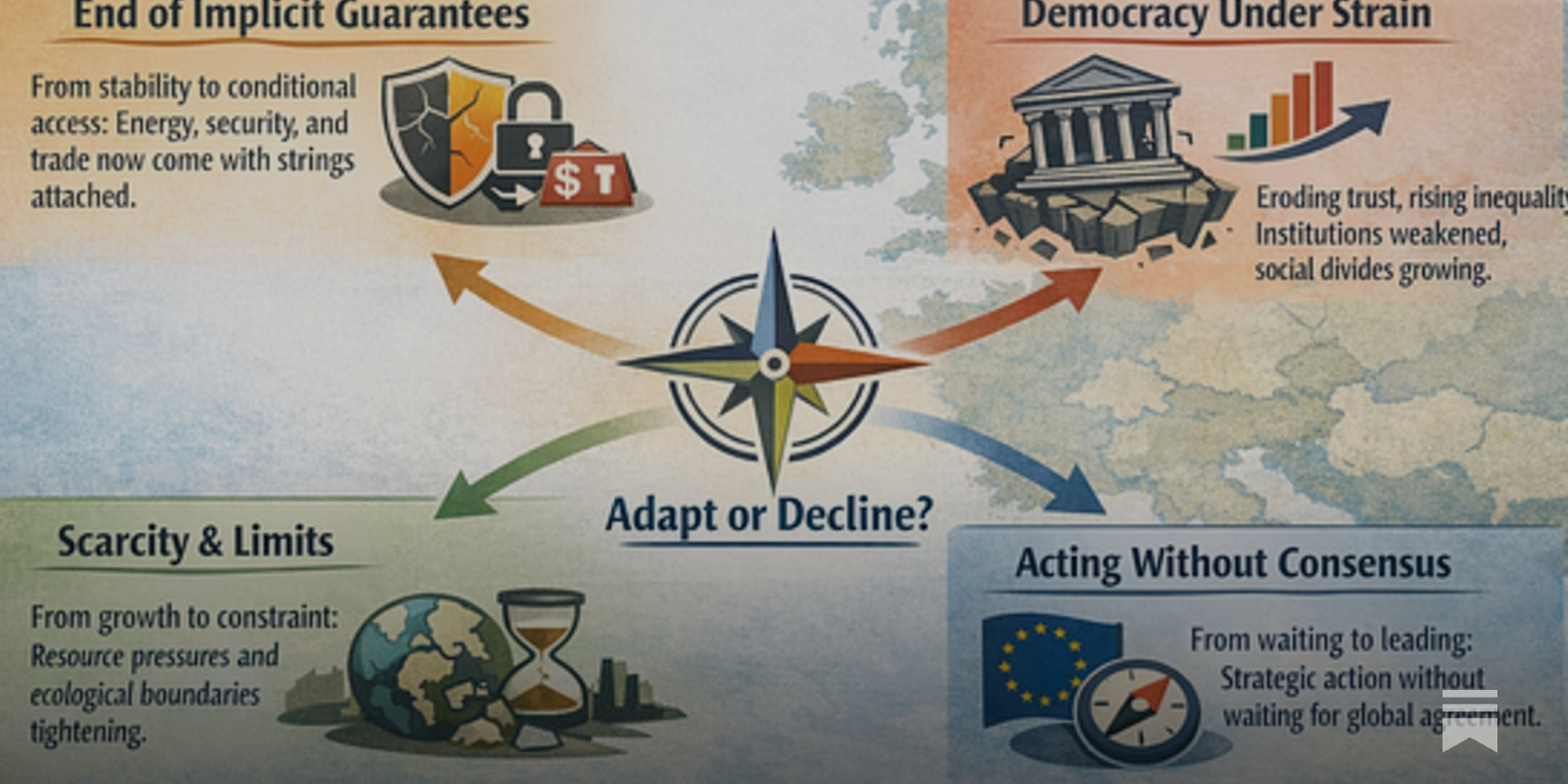 "The honest answer is that Europe will need to reduce aggregate material demand. [...] This means explicit policies for sufficiency: caps on resource-intensive consumption, progressive redistribution to maintain legitimacy under constraint, and industrial policy that prioritises resilience over scale.