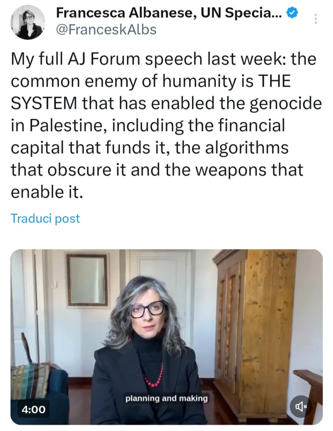 Francesca Albanese est rapporteuse spéciale des Nations unies sur les territoires palestiniens.
