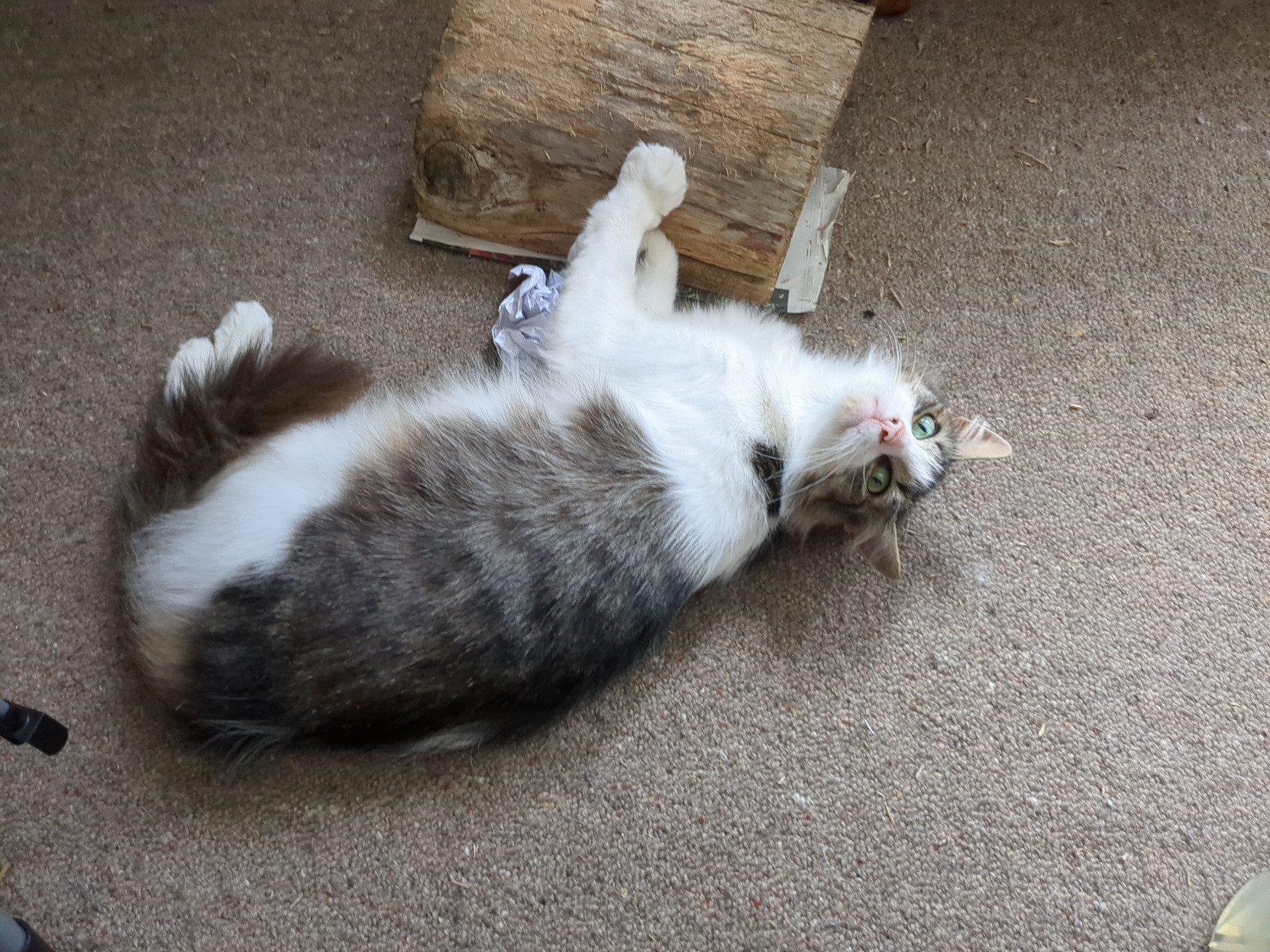 Her issues with catmates aside, she's timid but a real sweetie once she's got to know you. Loves skritches, bellyrubs, and surveilling the neighbourhood from a comfy windowsill.