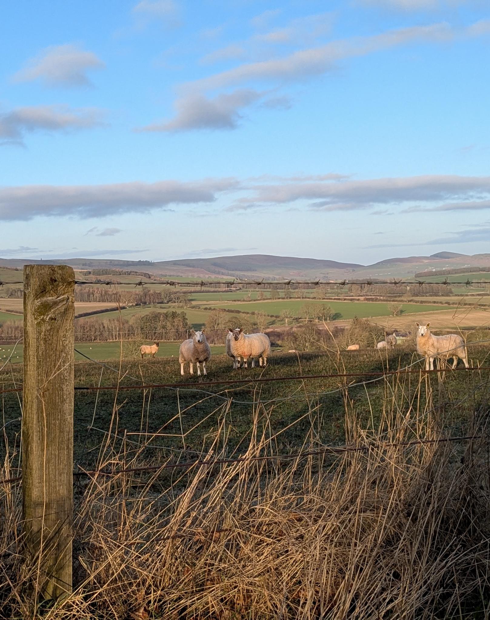 Moisture was descending from above, moistening the wool of the flock who were all in the bottom field. They did not need much encouragement to follow us breakfastwards.