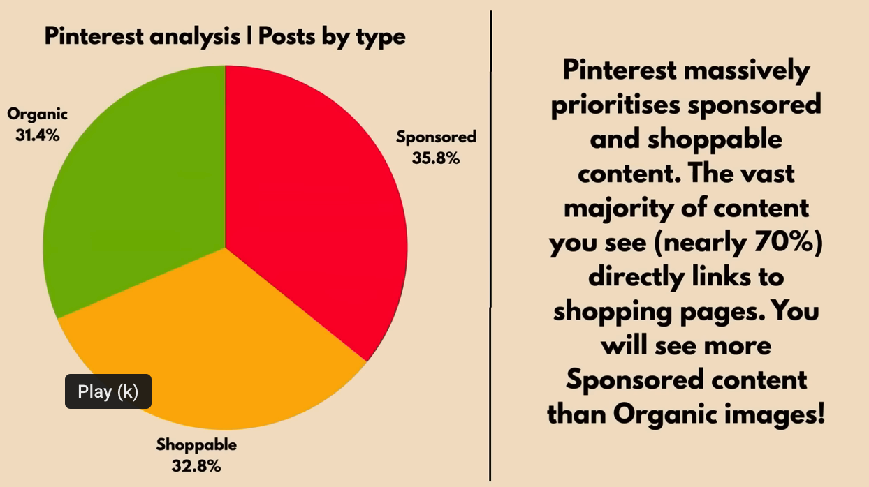 I'm really impressed with Steph's analysis. (is she on here yet?) #Pinterest is mostly shoppable and sponsored content. Social media should connect us with other people and their ideas. It's more fun, and healthy that way.