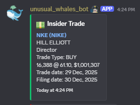 Additional $NKE insider activity, this time by CEO and President Elliott Hill!