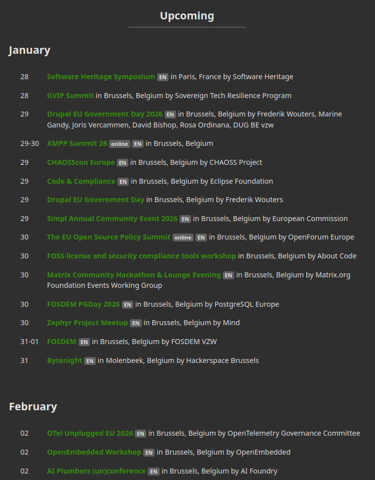 Thanks to our community you can find many events surrounding #FOSDEM on // foss.events including for leisure time.