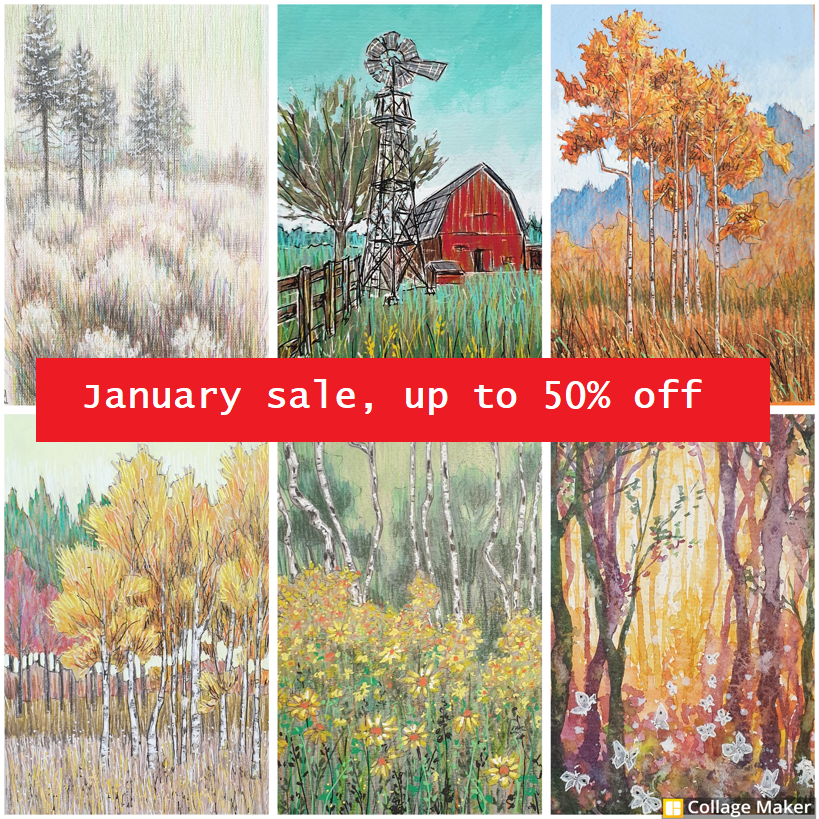 I have lots of landscape art available in my January sale, with up to 50% off! All original artworks, just clearing to make room for new work.