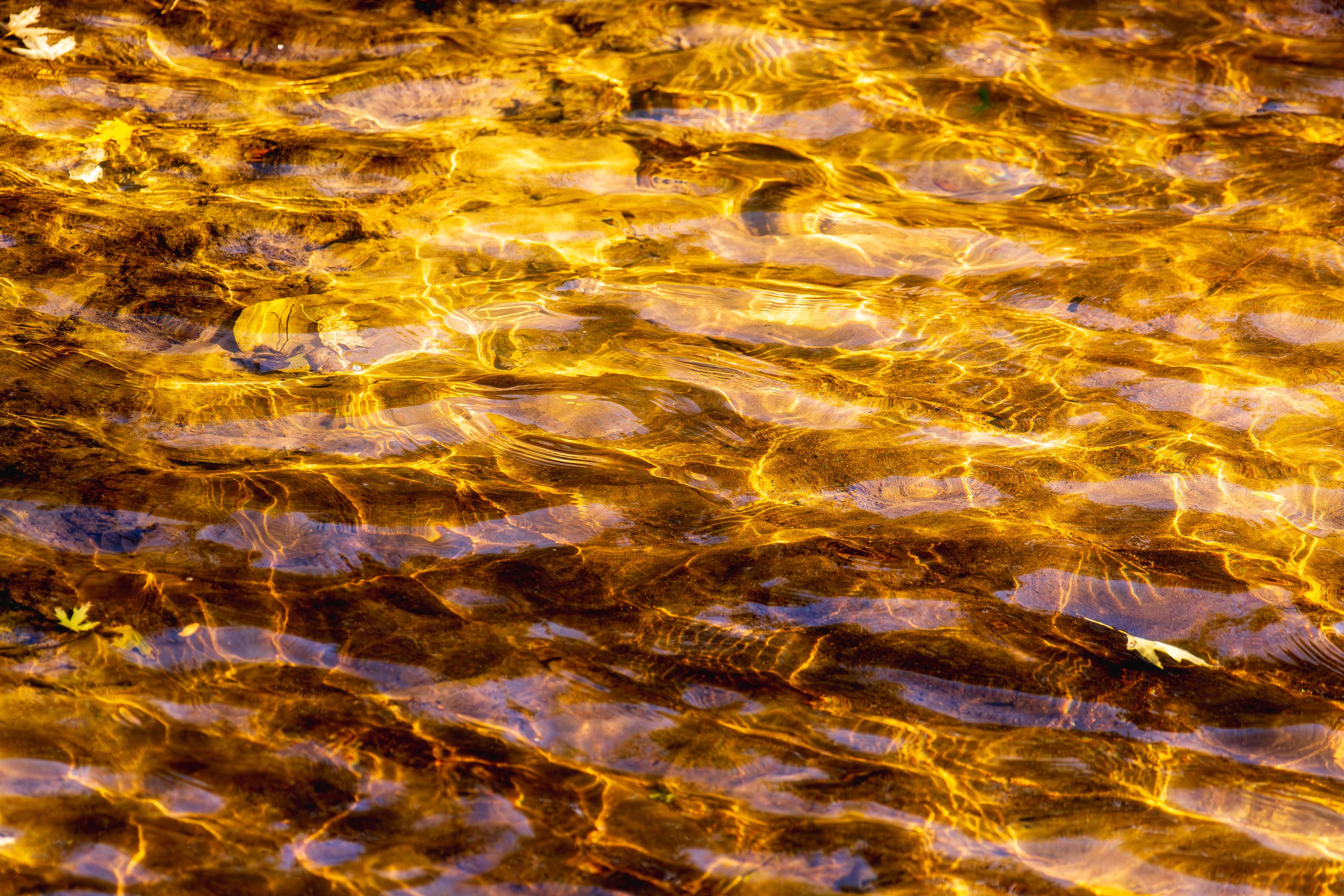 A view looking down on the sunlit & wind blown surface of Clear Creek in Coralville, Iowa. Looking closely you can see a few spots where the distortion is minimal & objects on the creek bed are visible. Hence, "Clear Creek".
