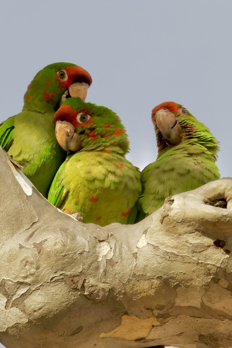 Three Black-headed gulls sitting on branch and talk about their day.
