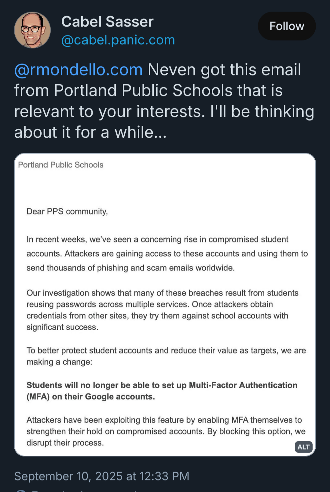 - Ban smartphones in schools, preventing the use of convenient MFA TOTP apps