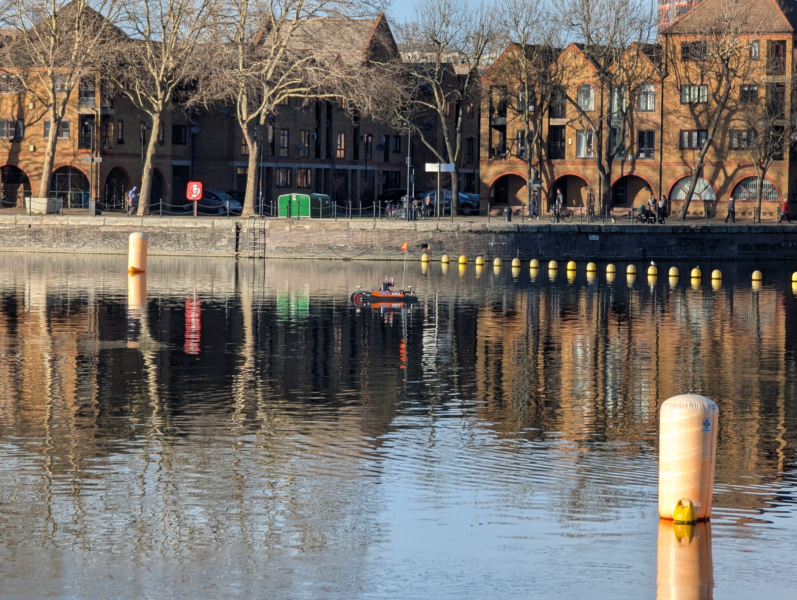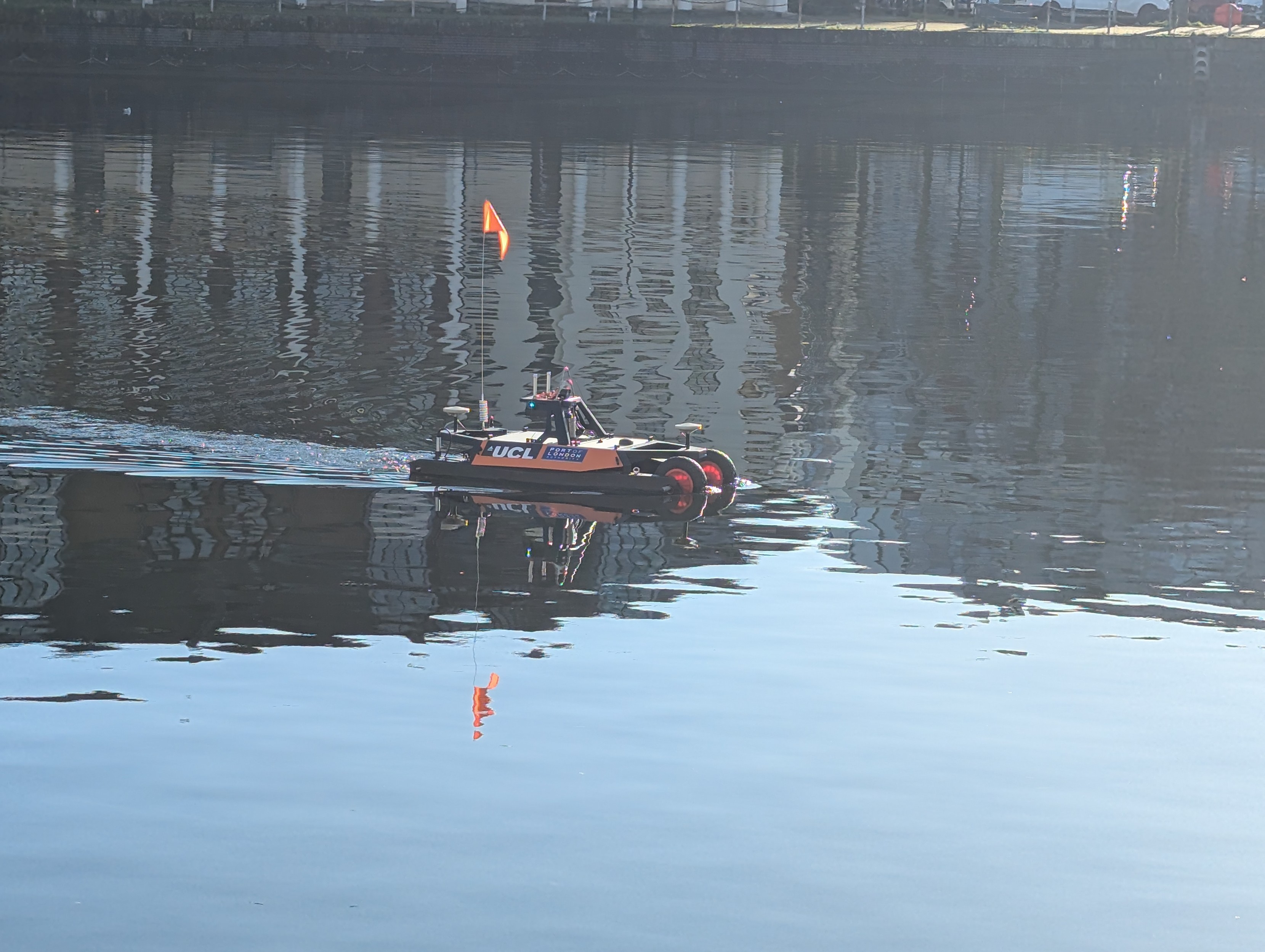 Anyone at #UCL or Port Authority #London tell me about this cute science robot boat-car that was pootling around Surrey Docks earlier today?