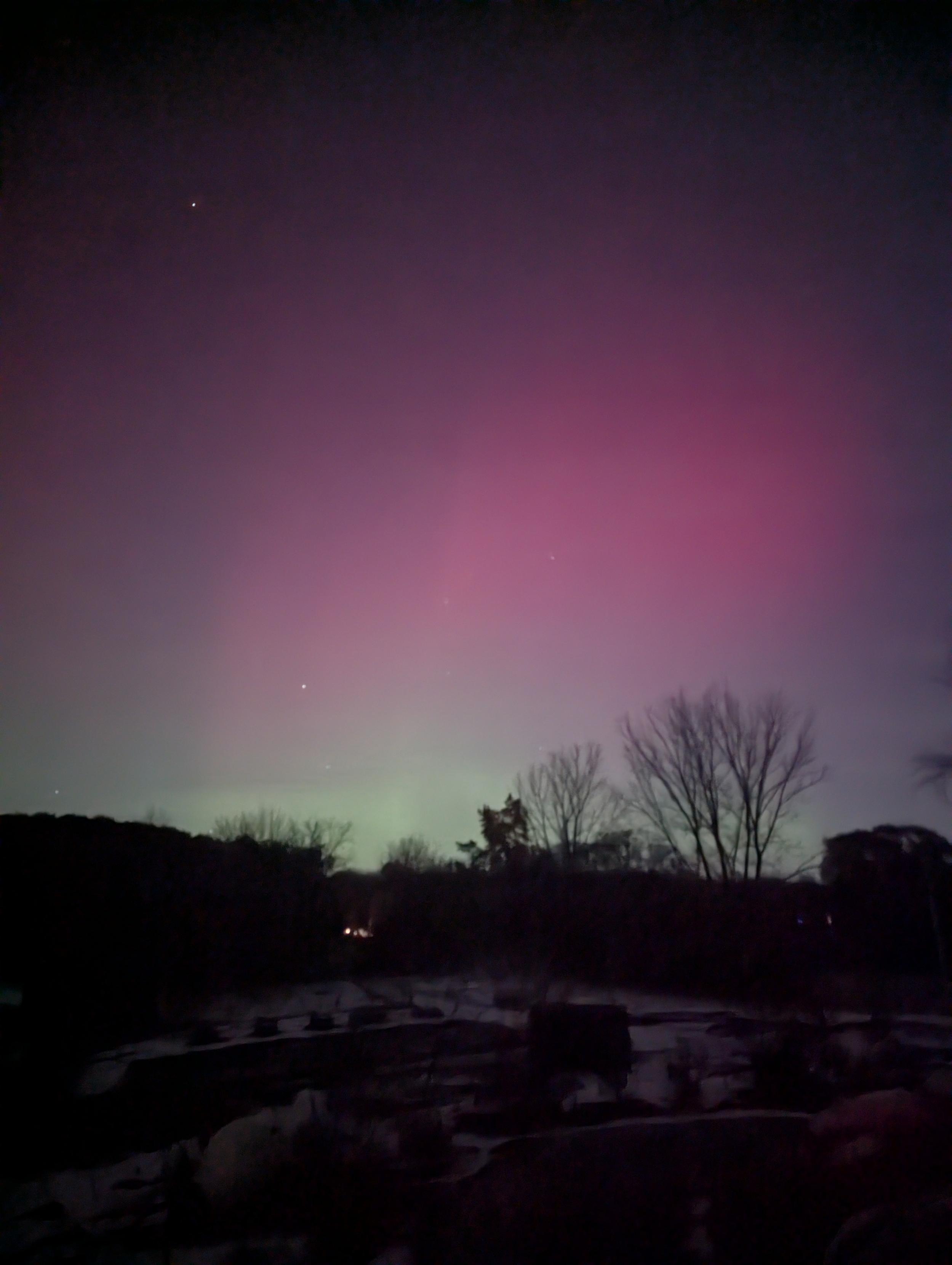 Other than the horizon being weirdly bright and there being a *hint* of a vertical pillar from time to time, this was pretty much not naked eye visible.