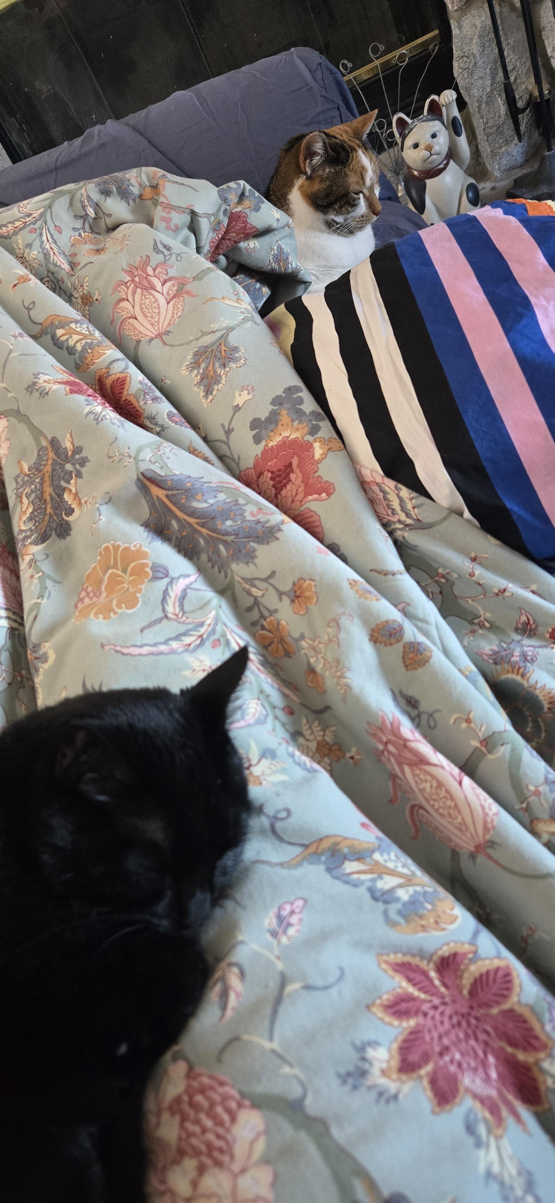 #Caturday report: when two cats who don't like each other both want to sit with me on the couch.