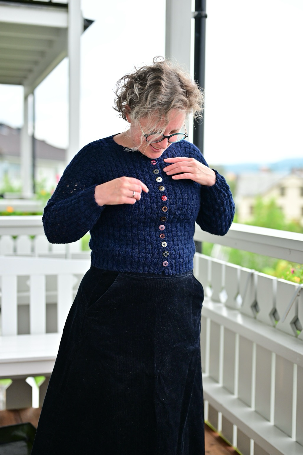 Meanwhile, I took a picture of the cardigan I knitted in a desperate attempt to fend off my stash. The buttons are singles from the stash I inherited from my grandmother. The question of nature or nurture remains in play.
