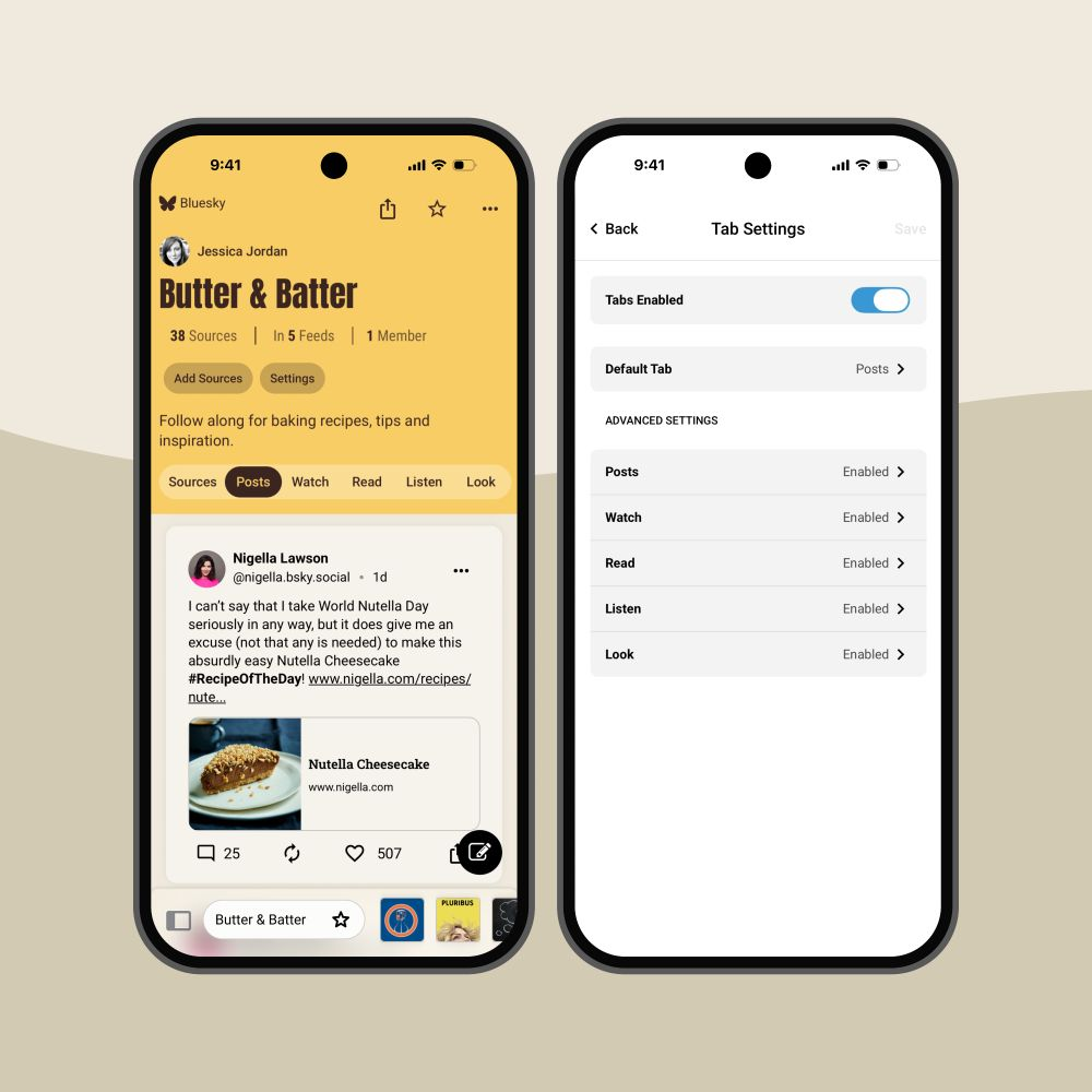 🎉 Version 1.0.356 of Surf is live on TestFlight and Android. Now, you have deeper customization options for your feeds — set your default tabs according to the type of content you want to highlight, filter by Bluesky or Mastodon, or even use Surf as your RSS reader.