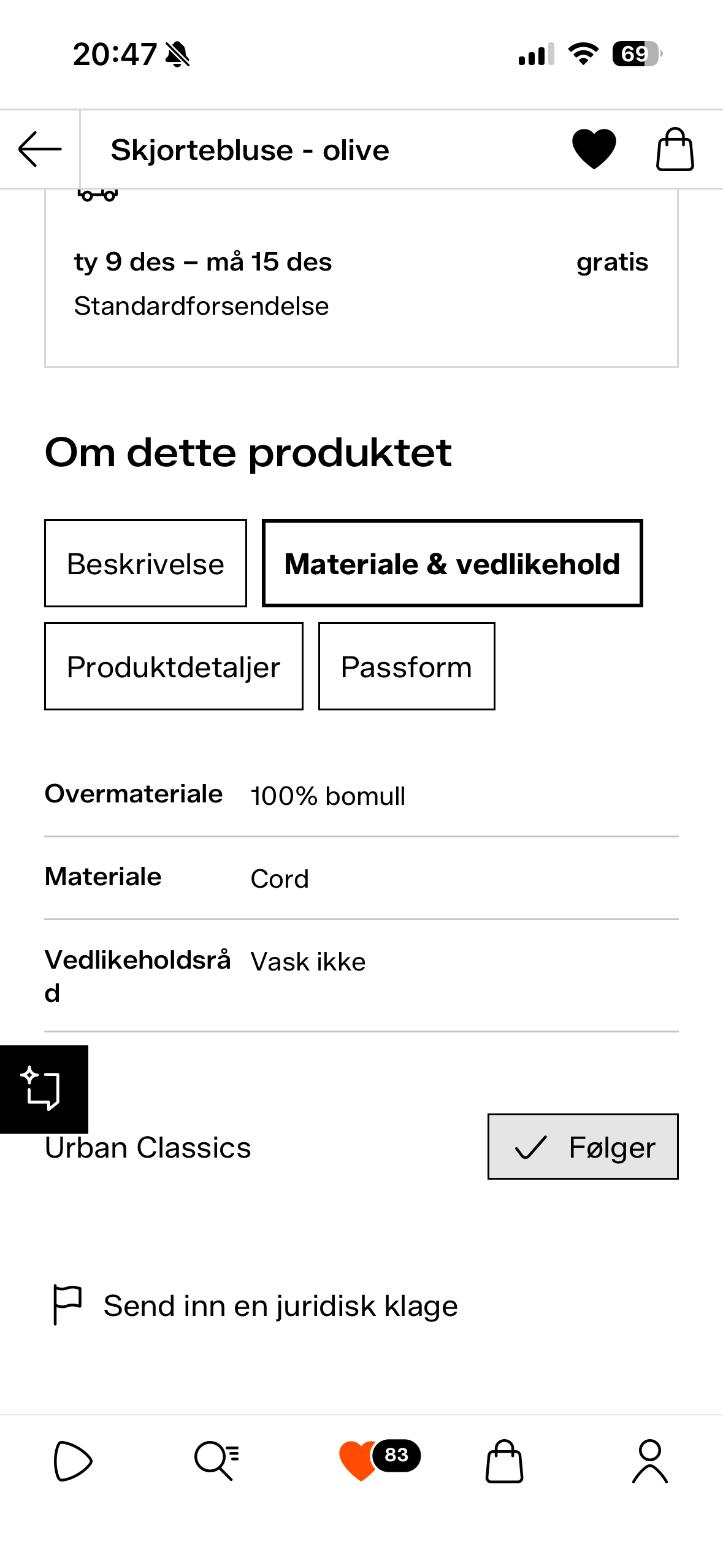 Jeg sendte faktisk inn juridisk klage på Zalando for denne skjorta. Grunnen? Jo, fordi skjorta, som er laget av 100% cord (altså bomull) ikke kan vaskes. Selvfølgelig kan den jo det. Men ansvarsfraskrivelse på dårlige tekstiler gjennom svært strenge vaskeanvisninger bør ikke butikker være kjent med. Jeg fikk avslag. #norsktut