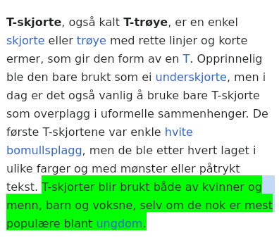 Fascinert over intro-teksten om "T-skjorte" på norsk Wikipedia.