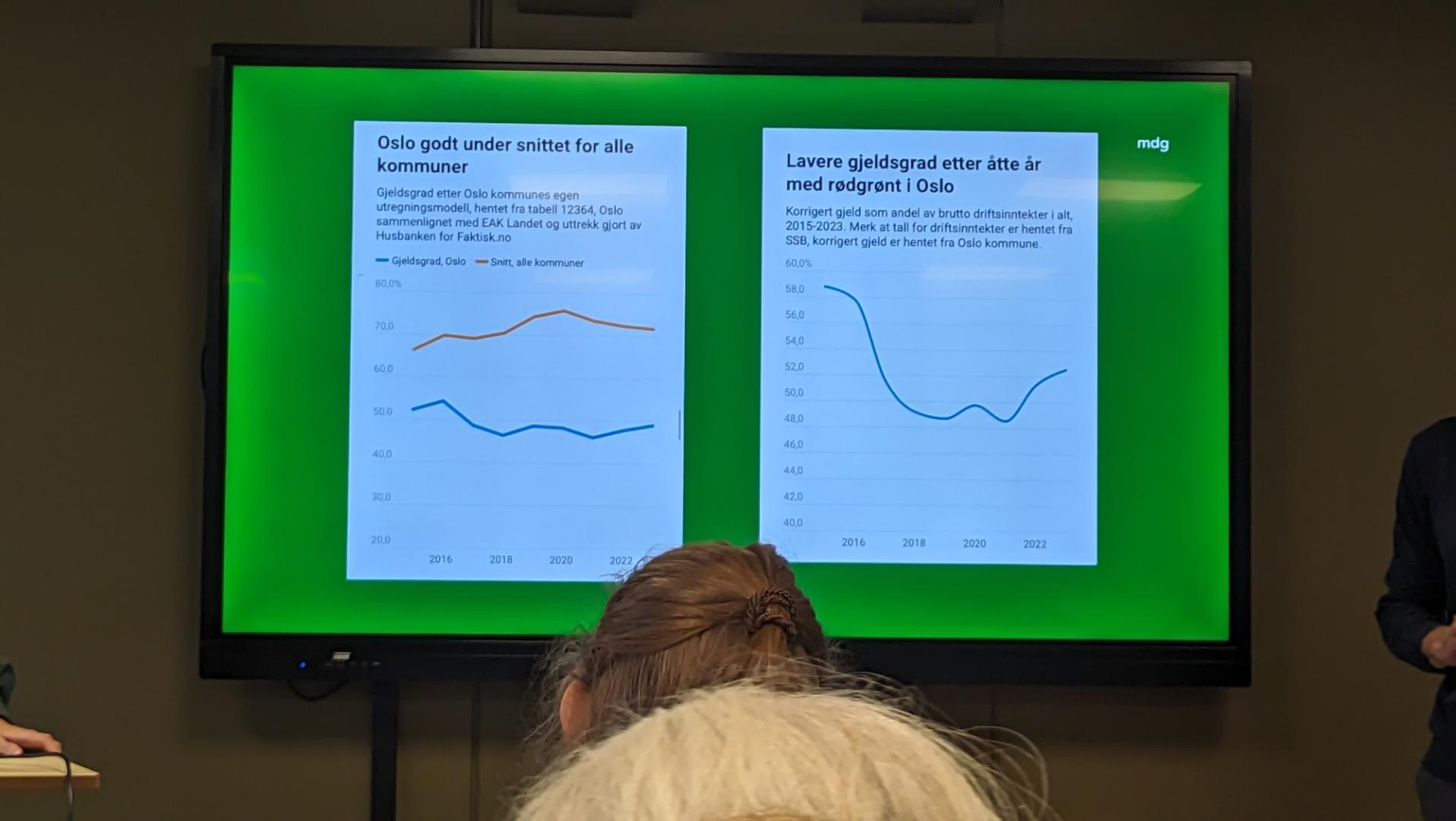 Sannheten er at gjeldsgraden (gjeld Vs inntekt) gikk kraftig ned under de åtte årene, og kraftig opp etter H tok over – og at Oslo hele tiden har en enormt mye bedre økonomi enn snittet av andre kommuner.
