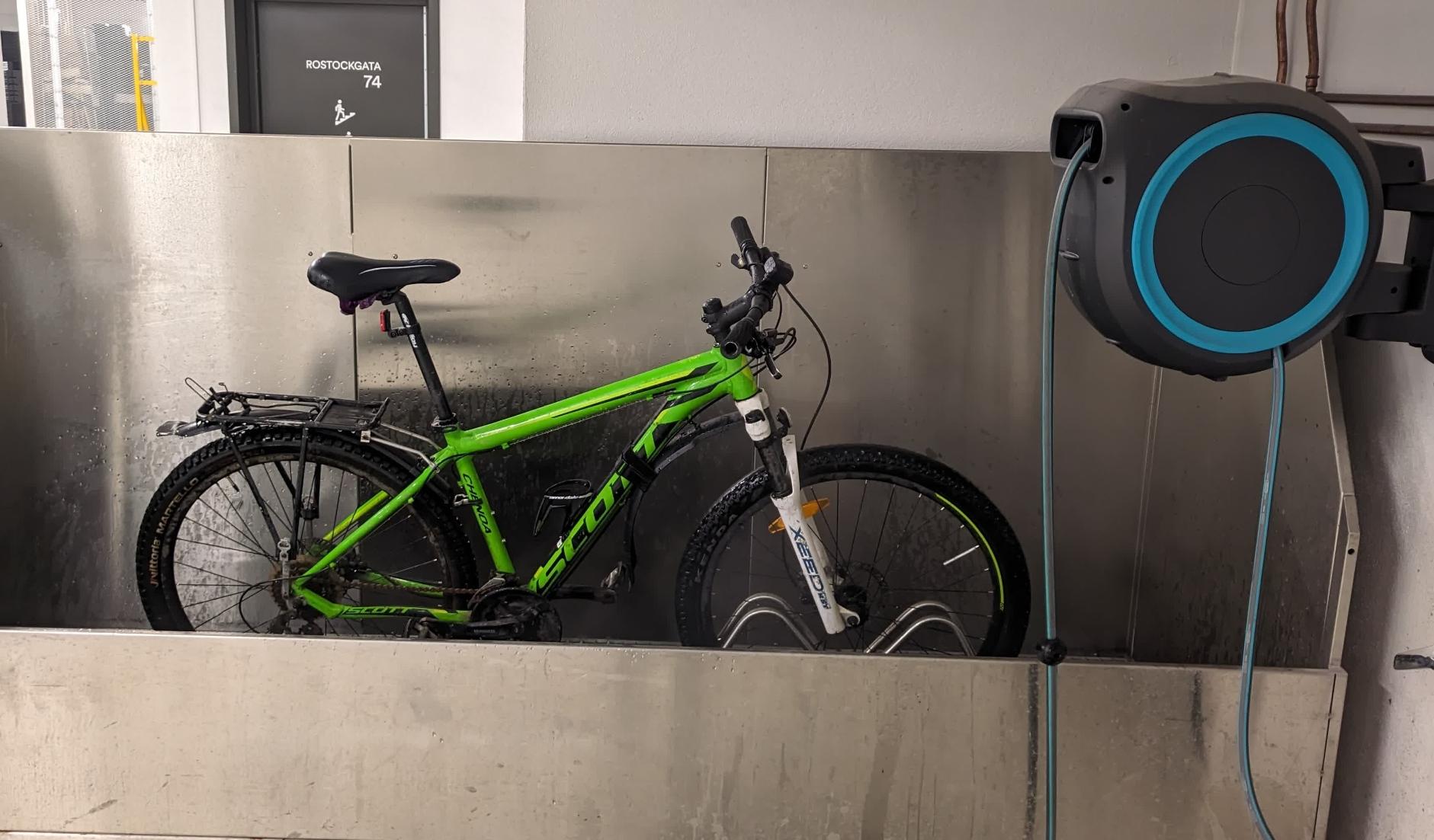Hot tips: I Rostockgata 74 finner du en offentlig tilgjengelig sykkelvask, om du bare triller ned i p-kjelleren. Du finner en åpen port på den siden av Clemenskvartalet* som er i retning Sørenga/Losæter.