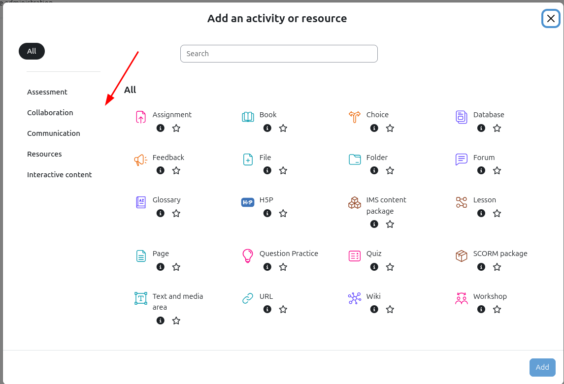 #Moodle 5.1 has a new layout for the activity choser with categories along the left listing