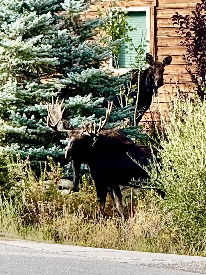 Look who’s dining out! The largest animals, by far, that I saw on my adventures in #Colorado were not on a trail, but next to a house in a neighborhood that abutted one of the trailheads. While walking to my car after a hike, I saw four #moose (two in pic) chomping on some delicious shrubs and trees next to the house. 🤣 This is a zoomed in photo— definitely kept my distance. #wildlife #nature #photography