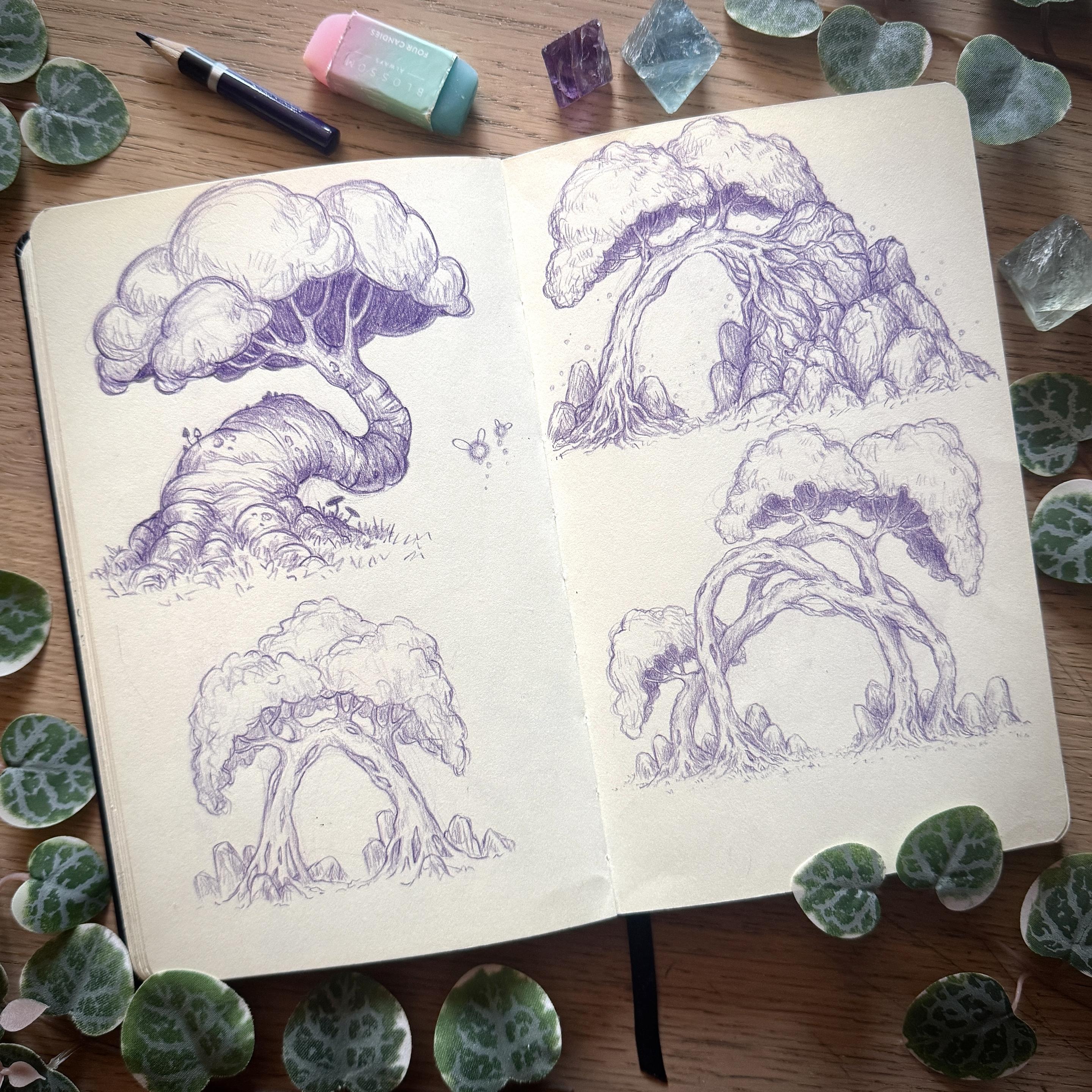 You can get regular peeks into my sketchbooks over on my Patreon: https://patreon.com/lindenshieldarts