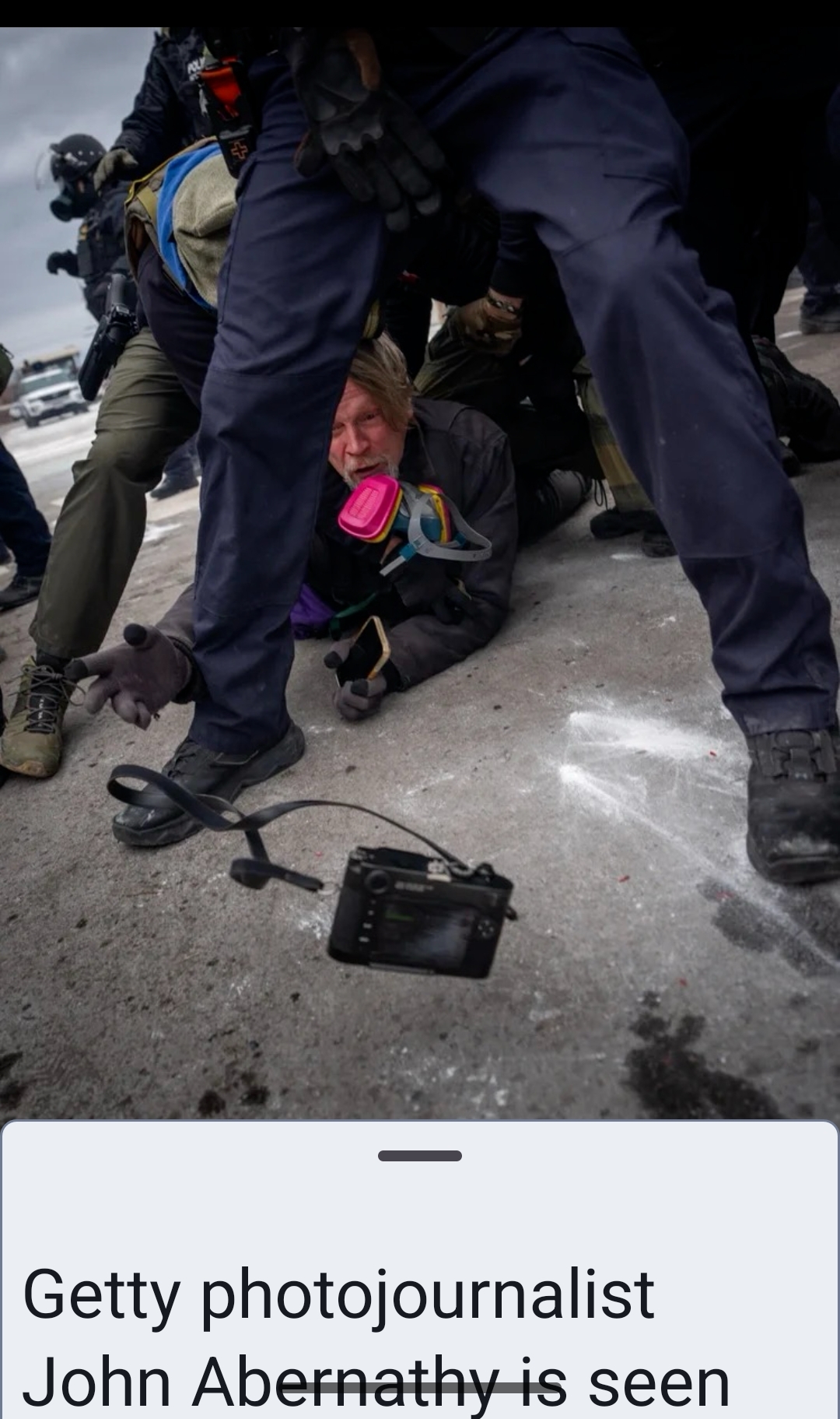 @Nonilex@masto.ai My god, this is Getty #photojournalist John Abernathy. He wrote on instagram “I was tackled by #ICE agents & surrounded by about 50 #border #police. Just for taking photos. I tossed my camera to another Photographer to make sure it wouldn't be confiscated. #Minneapolis.