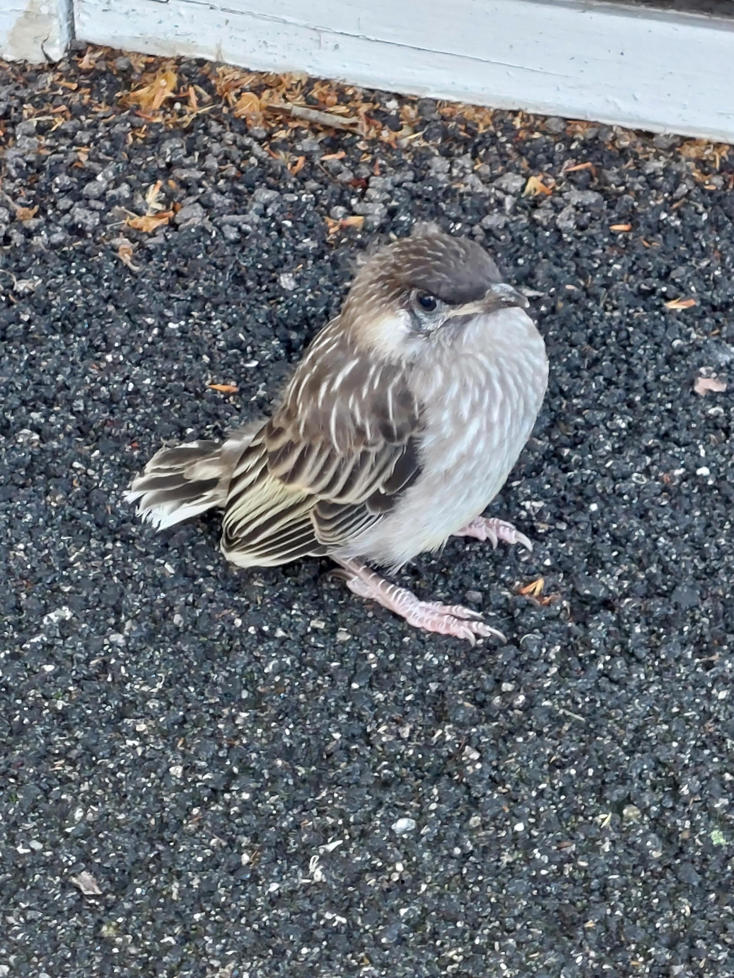 Can anyone identify this bird? I suspect it is quite young. It was chirping away for quite some time in this spot without flying away. It seemed quite discombobulated (another way of spelling confused :-).