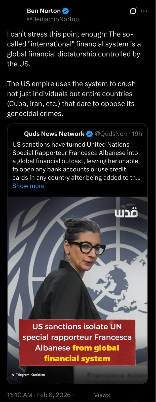 I can't stress this point enough: The so-called "international" financial system is a global financial dictatorship controlled by the US.
