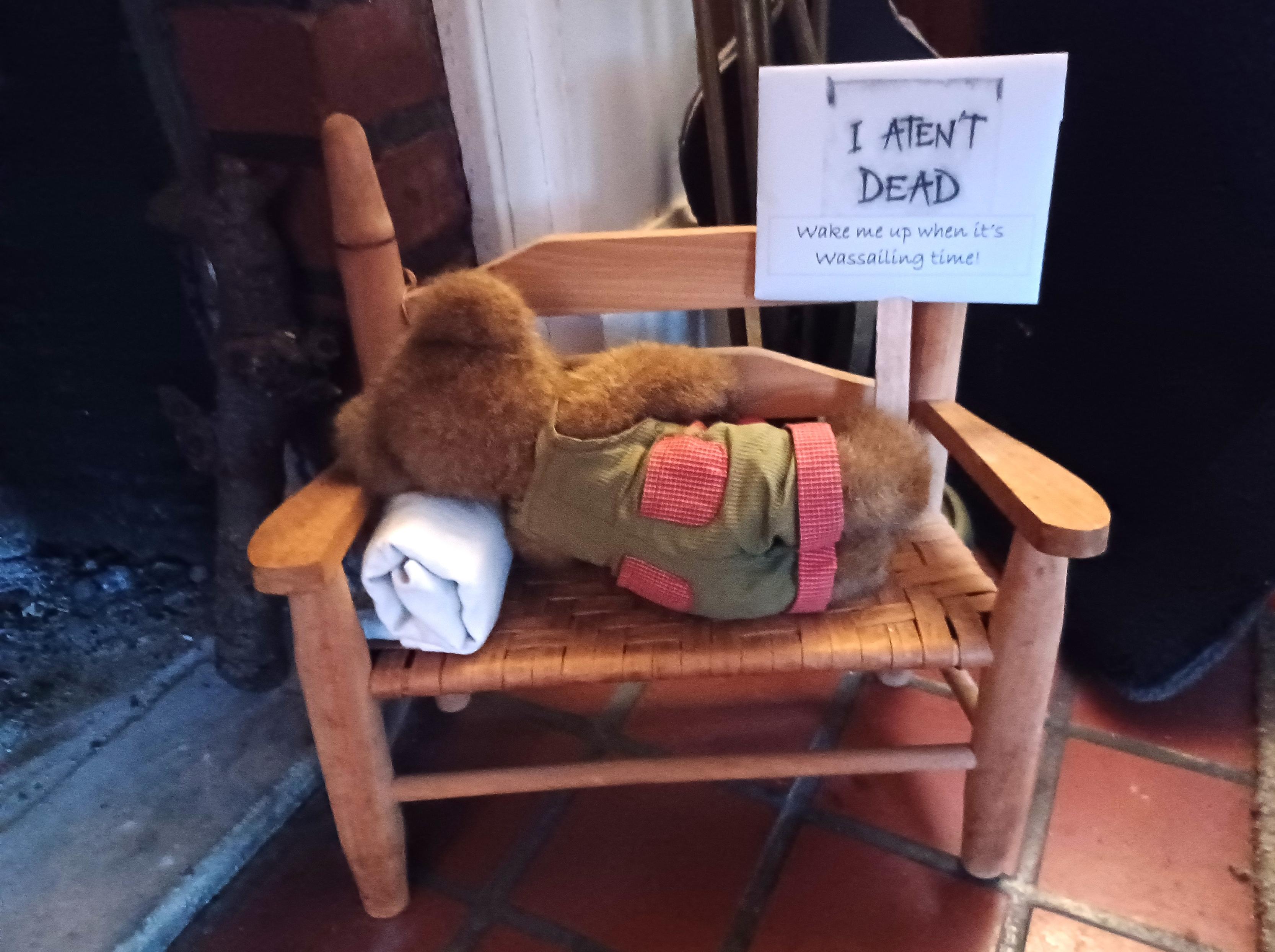 With the gardening season done and all the tools cleaned and tucked away, BeetBear is leaving me on my own to get all the apple trees pruned over the winter. He's napping by the fire with instructions to wake him up for the Wassailing later on.
