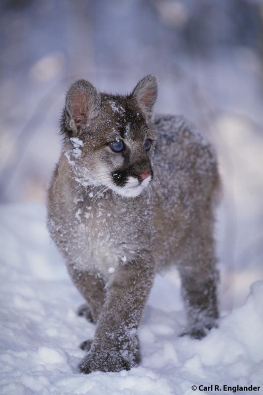 Here's my photo of a young Cougar in snow (Puma concolor). The Cougar is also known as Mountain Lion, Puma, Catamount, or Panther. ©Carl R. Englander