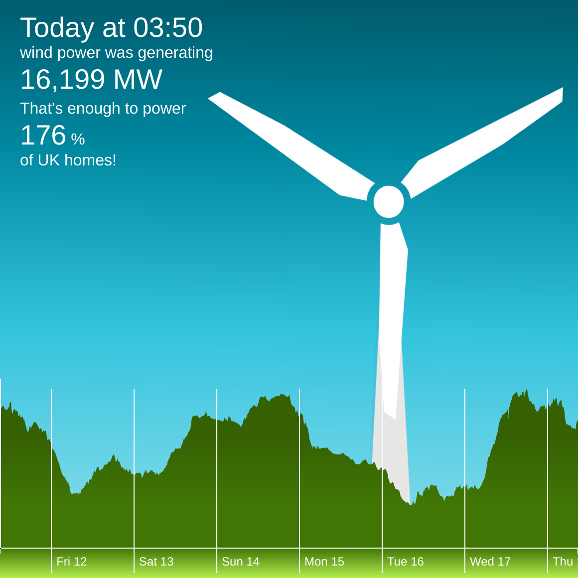 While you were sleeping, #windEnergy reached 56% of the National Grid's electricity demand. https://winderful.uk