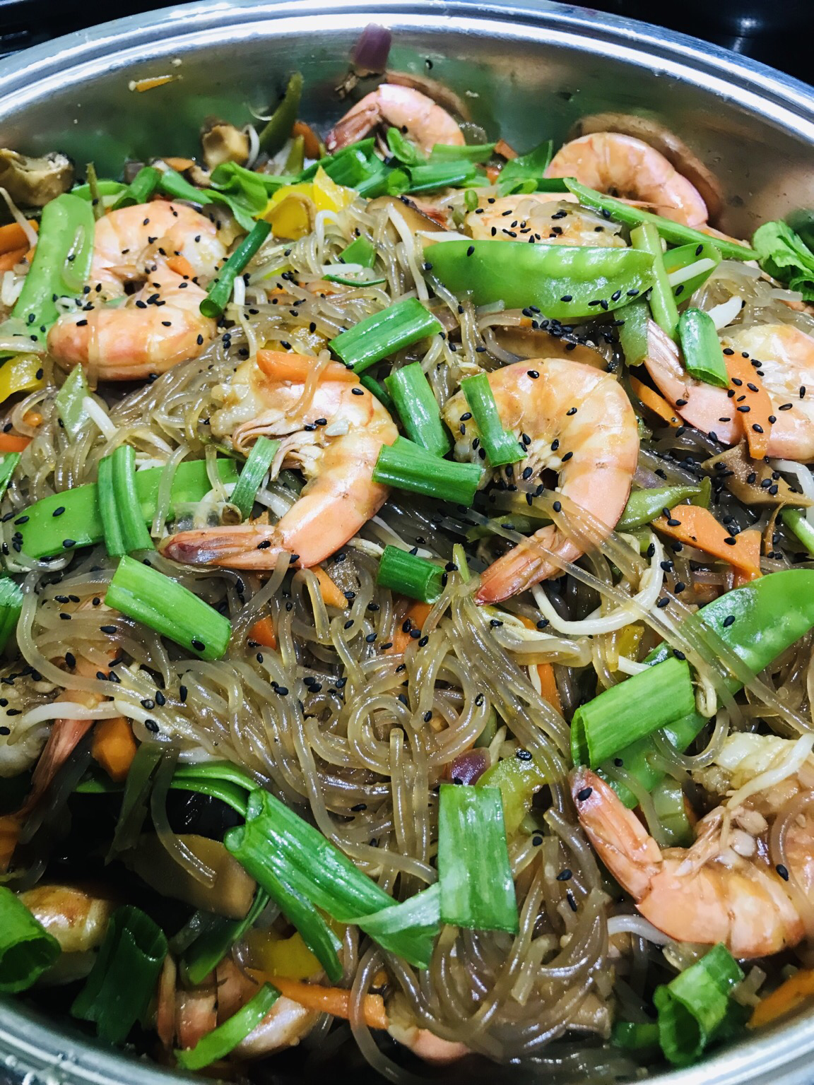 1. Made shrimp & veggie japchae at home for dad’s birthday meal 🍤