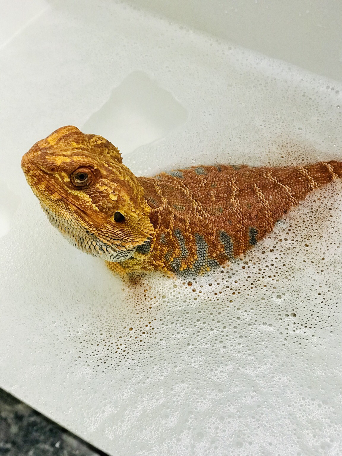 Bearded dragon in bubble bath coz he made a mess earlier