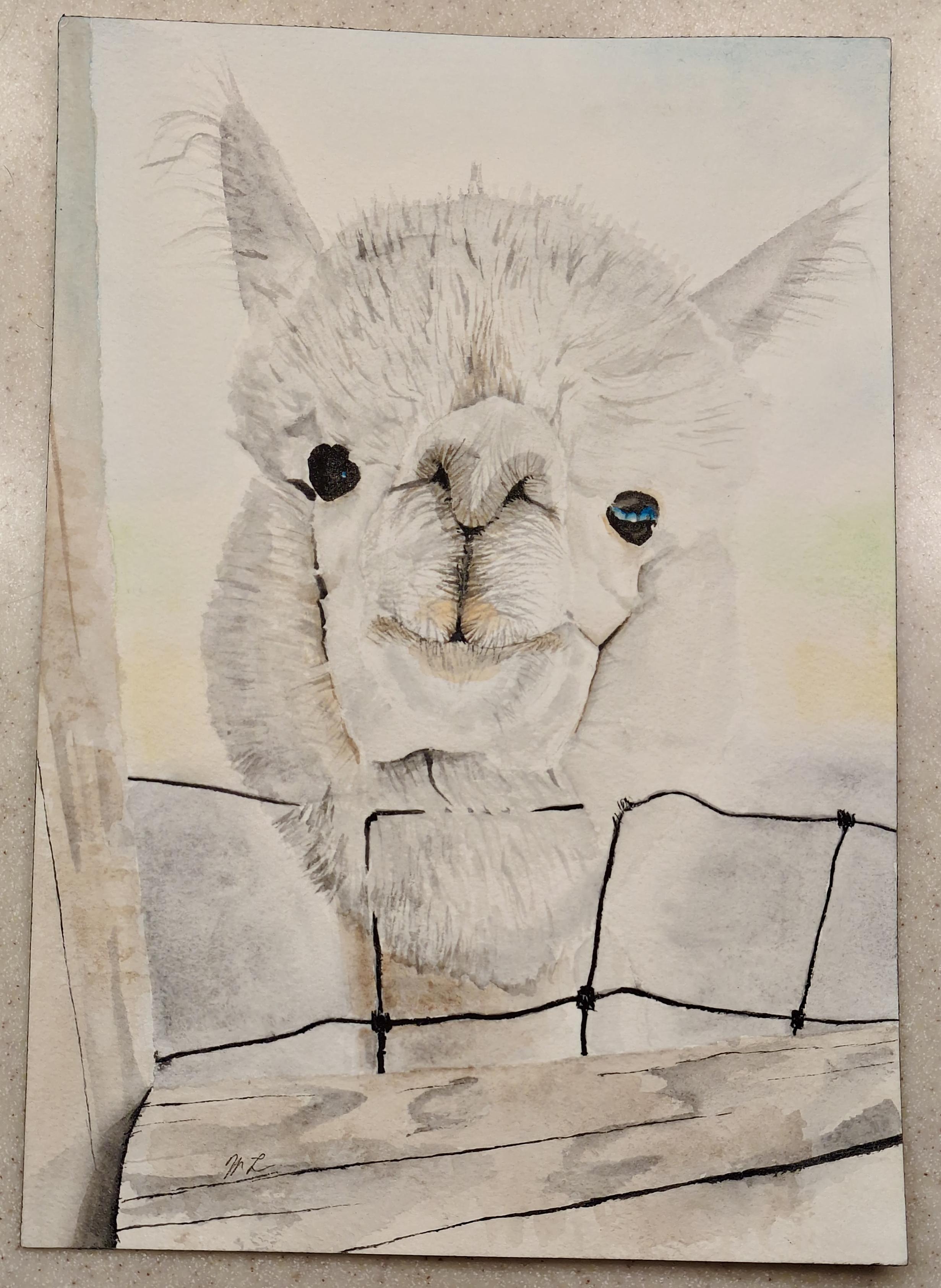 Over the weekend I finished a watercolor painting of an alpaca. I met this cutie at a team outing we did last spring.