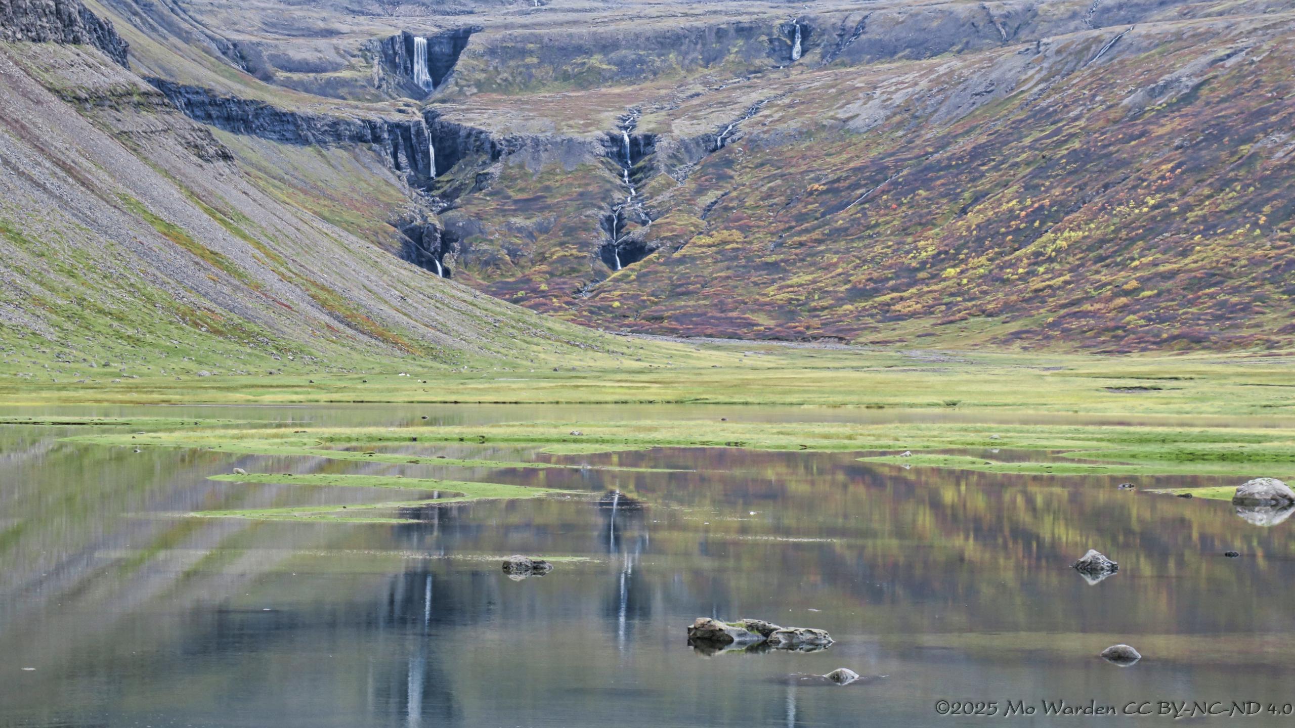 A portrait orientation landscape photo of red sandstone cliffs leading up up and up higher. It is deep in the Grand Canyon. There are some small shrubs on the lower portions where it is damp, but it is very arid further up away from the river. A bit of blue sky is seen above, and a small waterfall is pouring down in the middle of the frame into a cold, surprisingly deep pool that will work its way down to the main flow of the Colorado River. There are some precariously stacked boulders at the top and side of the falls. It's humbling and a bit concerning to think about the intense flows that must have been required to move those into place. Also, about how there are probably very few people on the planet who have seen this waterfall due to how it is both extremely difficult to access and not notable enough for anyone to seek it out specifically. This was shot handheld with a Fujifilm X-T1 and an XF 18-55 lens at 20mm, f22, 1/8s, and ISO400. Yeah, I accidentally bumped the aperture ring off of automatic, so it's got more depth of field than I probably needed, and a bit more diffraction noise than average, but it actually looks pretty good printed large, as I gifted a framed print to my cousin.
