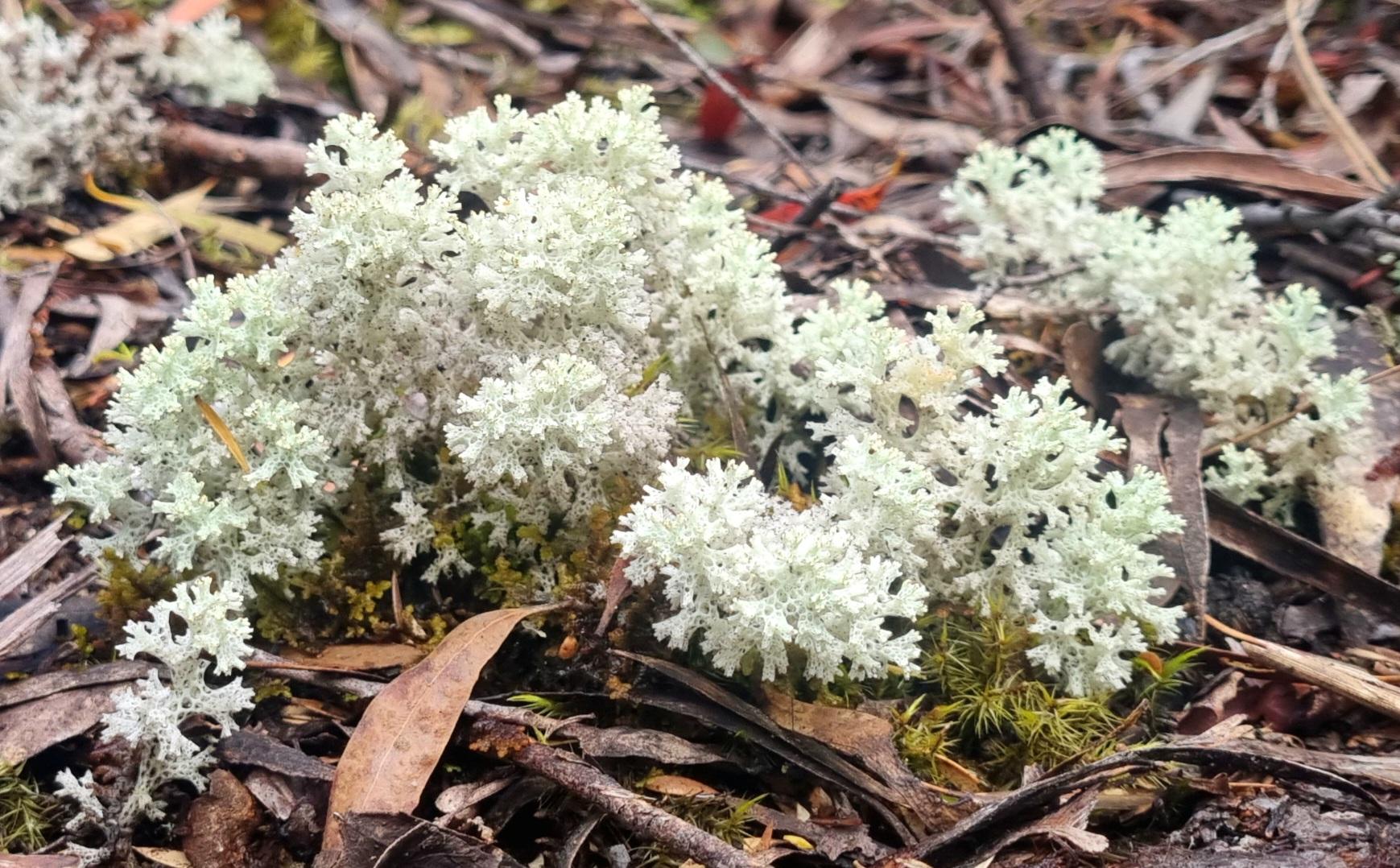 While walking at Lake St Clair National Park, we saw masses of coral lichen just covering ground areas. Apparently, it thrives on ground where dead or dying buttongrass can be found.