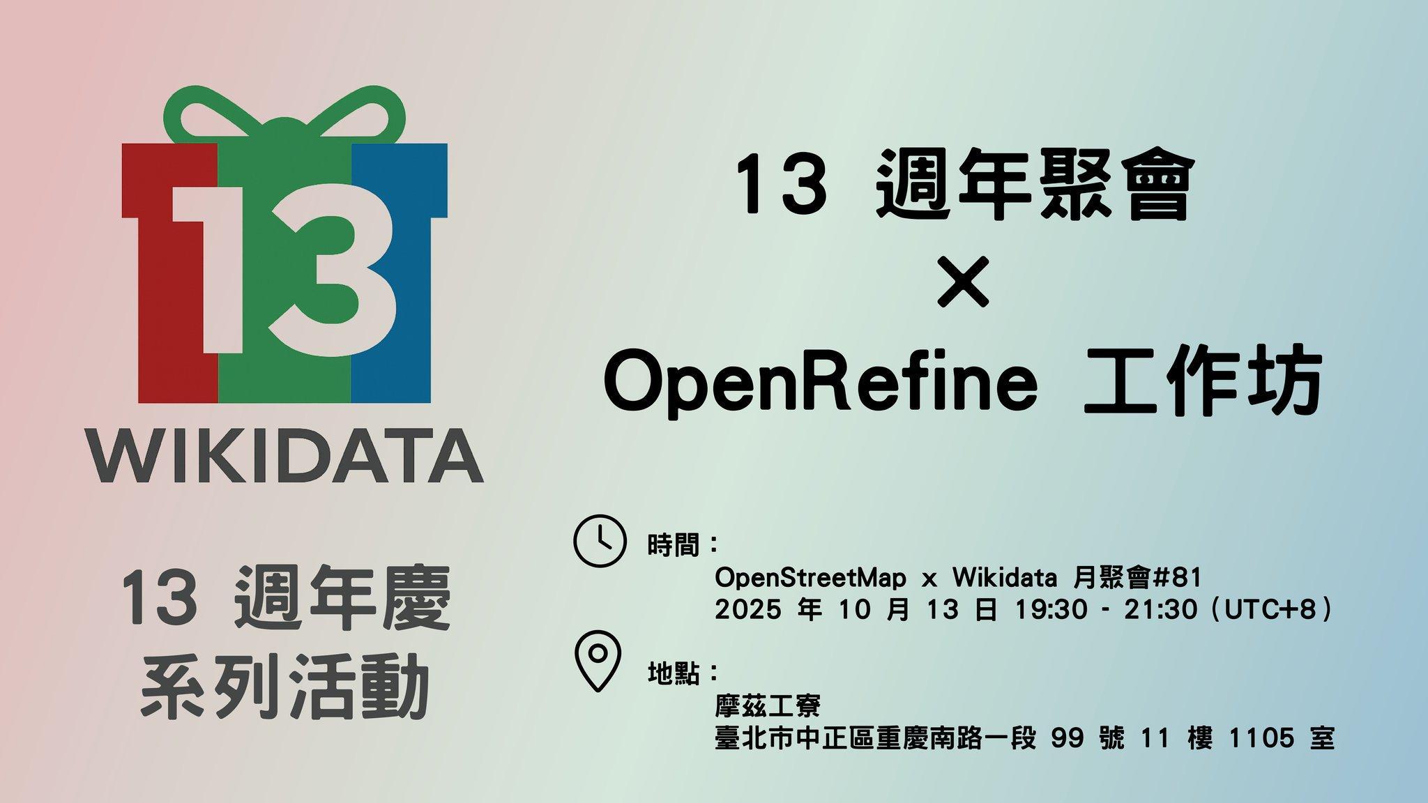 Wikidata 13 週年慶臺灣系列活動第一場次就在 10 月 13 日!