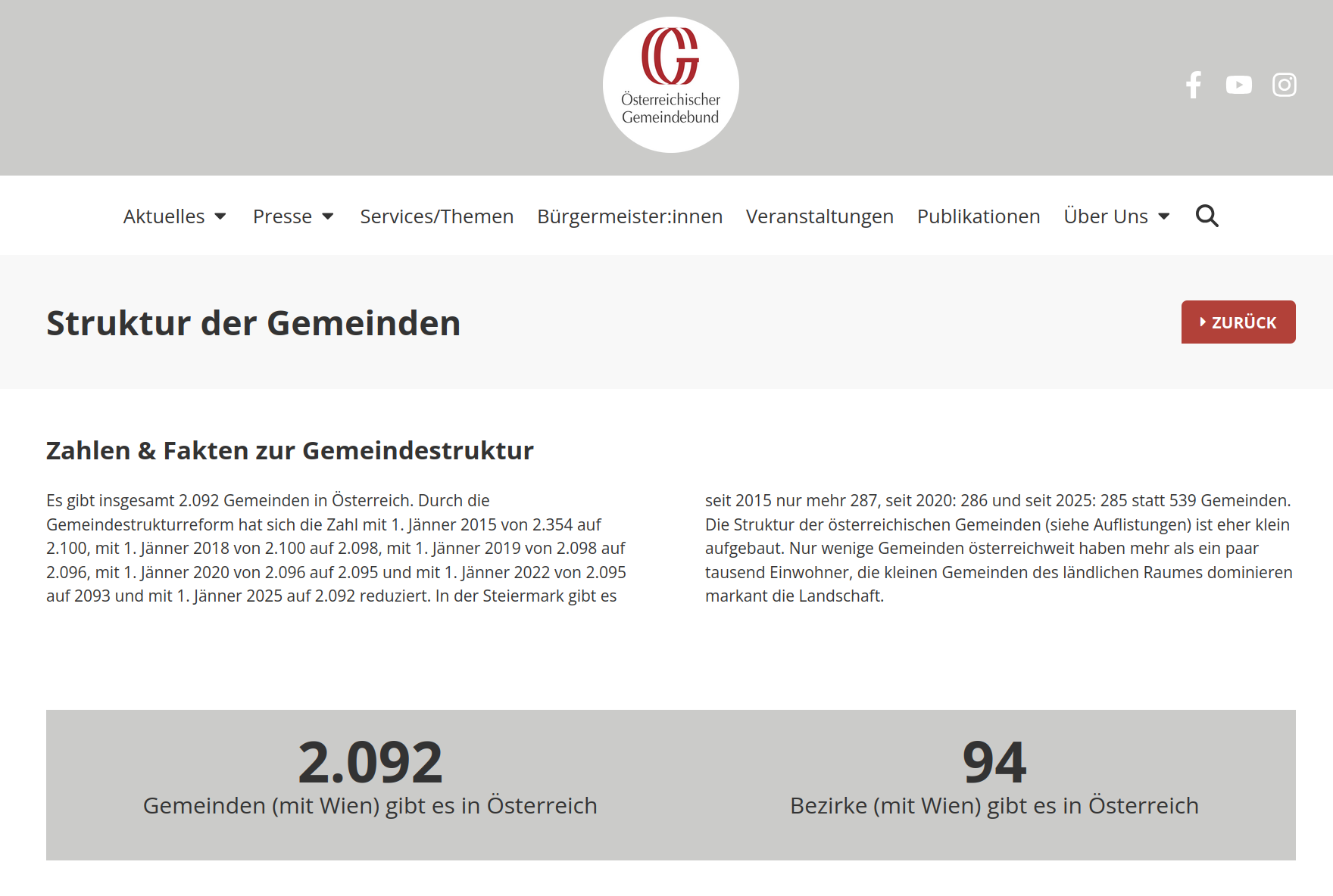 Österreich sagt, es gäbe 2092 Gemeinden.