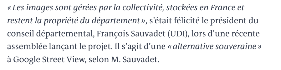 #Panoramax est une très belle initiative française, espérons que les politiques ne fassent pas tout foirer. https://www.lemonde.fr/pixels/article/2025/12/30/la-cote-d-or-lance-une-alternative-souveraine-a-google-street-view_6659980_4408996.html
