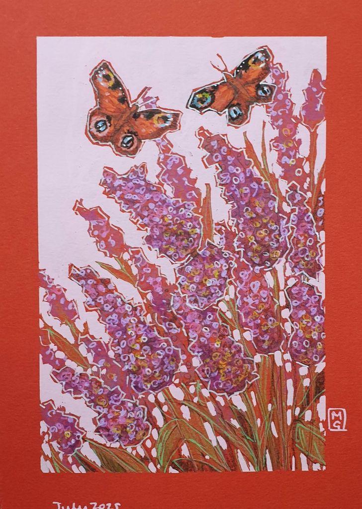 Prices reduced further for final week of my sale. Peacock butterflies on Buddleia flowers, original artwork now only £15!