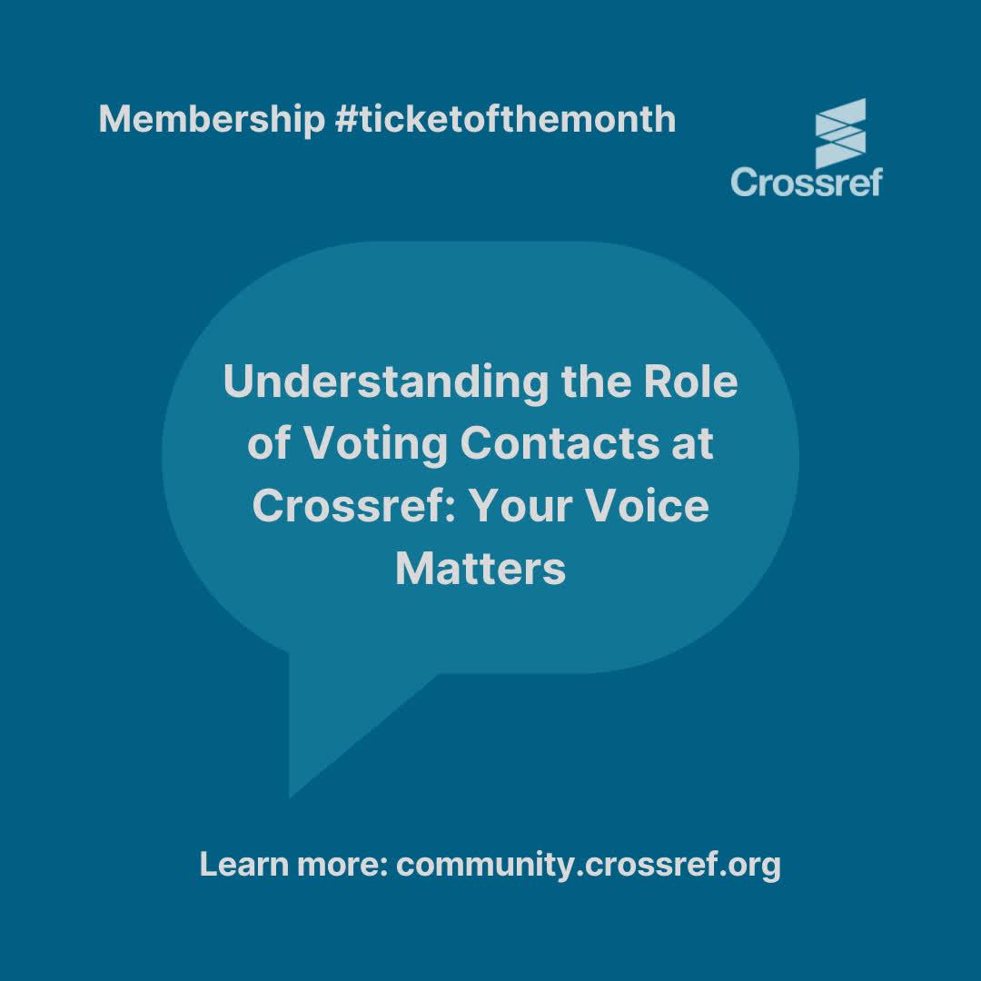 Crossref members help guide our direction through their Voting contacts. Each member gets one vote in board elections, ensuring every voice has equal weight. https://community.crossref.org/t/understanding-the-role-of-voting-contacts-at-crossref-your-voice-matters-membership-ticket-of-the-month-october-2025/14749?mtm_campaign=membership%20ticket%20october%202025&mtm_source=MS&mtm_medium=social