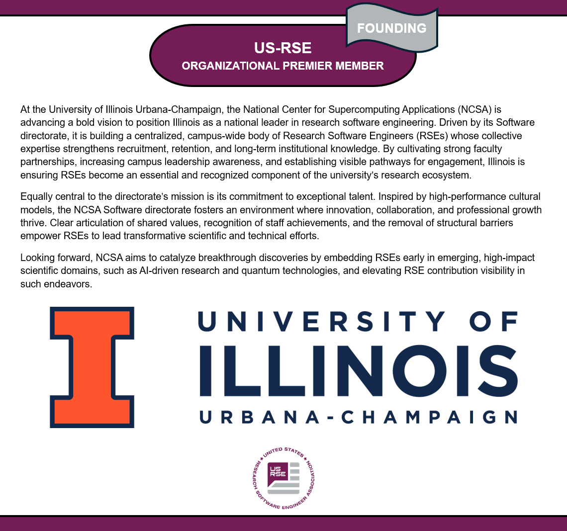 Check the spotlight of one of the premier founding members of US-RSE, the National Center for Supercomputing Applications at the University of Illinois Urbana-Champaign ( #NCSA ), on how they help promote RSE's impact on #research and provide valuable resources!