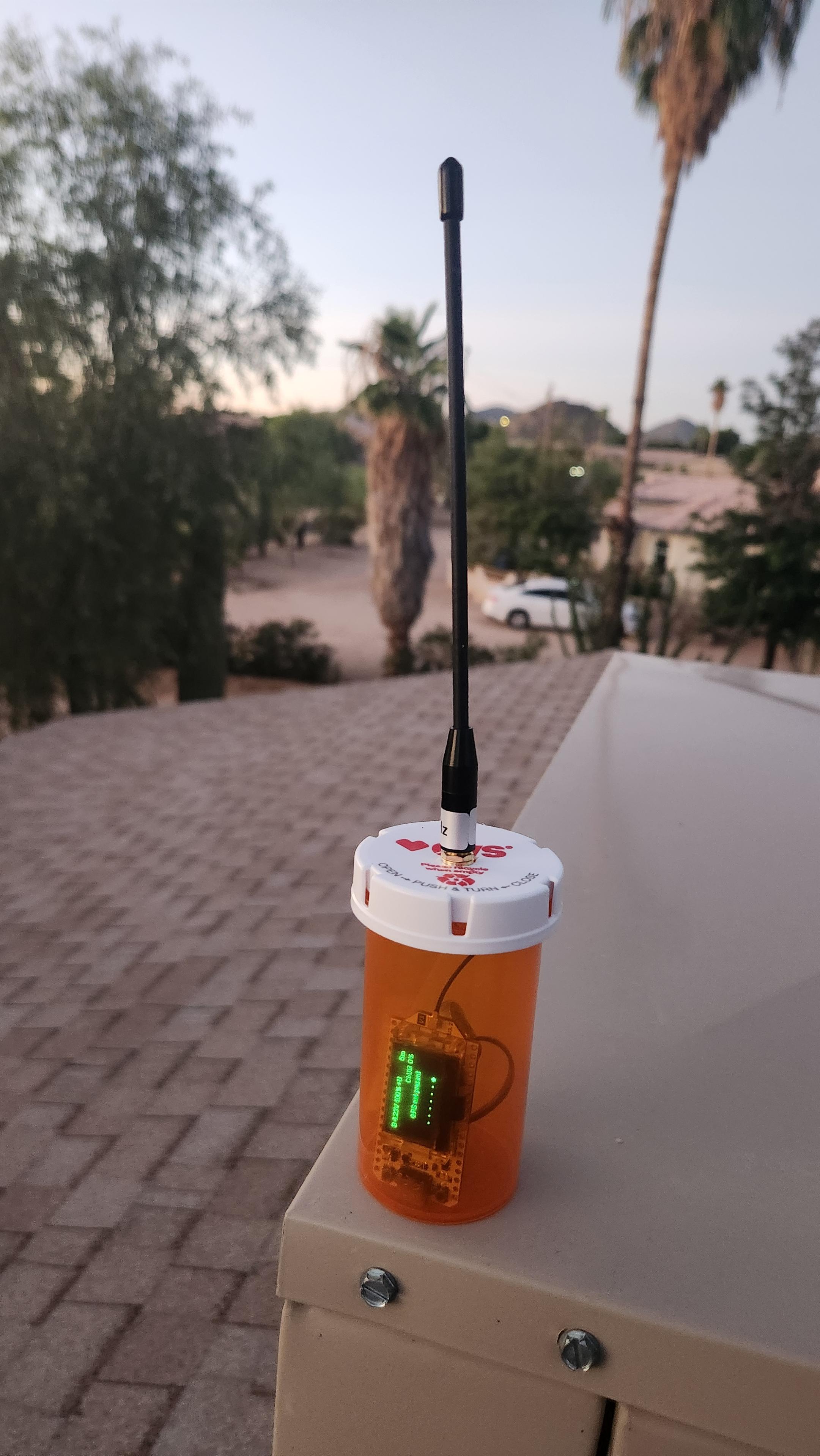 So after a few days of utter failure, I ordered a little +10dBi whip antenna and threw the whole #meshtastic node up on the roof. Immediately, 40+ miles range out of the thing! Gain and elevation count!! Now, time to build it into a more permanent form. :-)