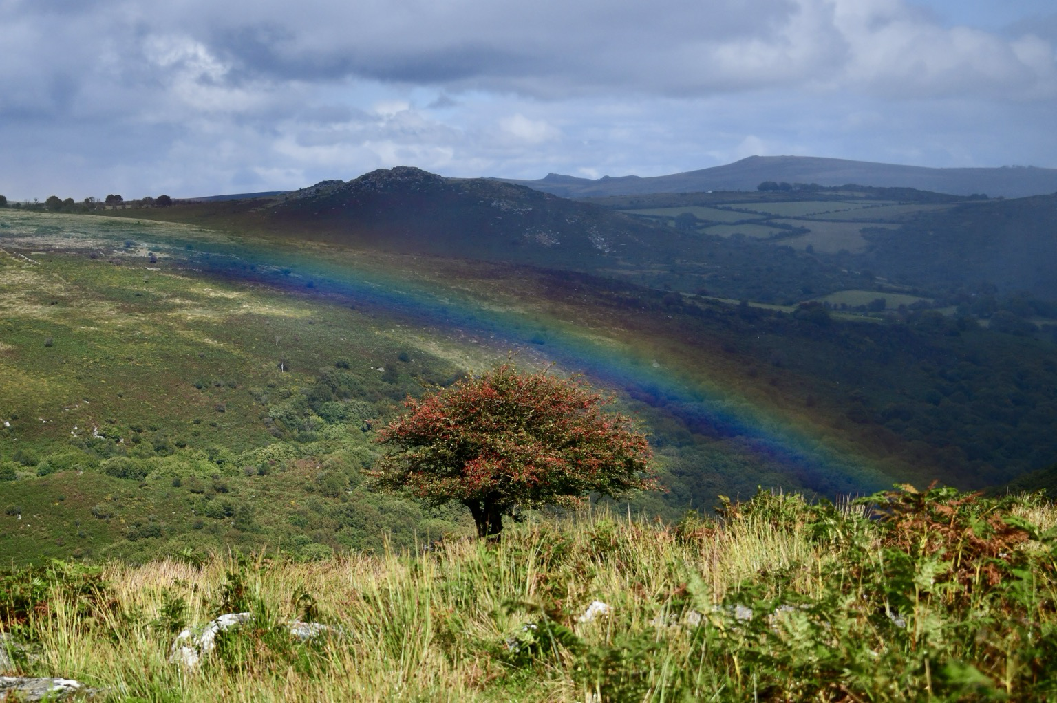 Rainbow and hawthorn, Combestone tor