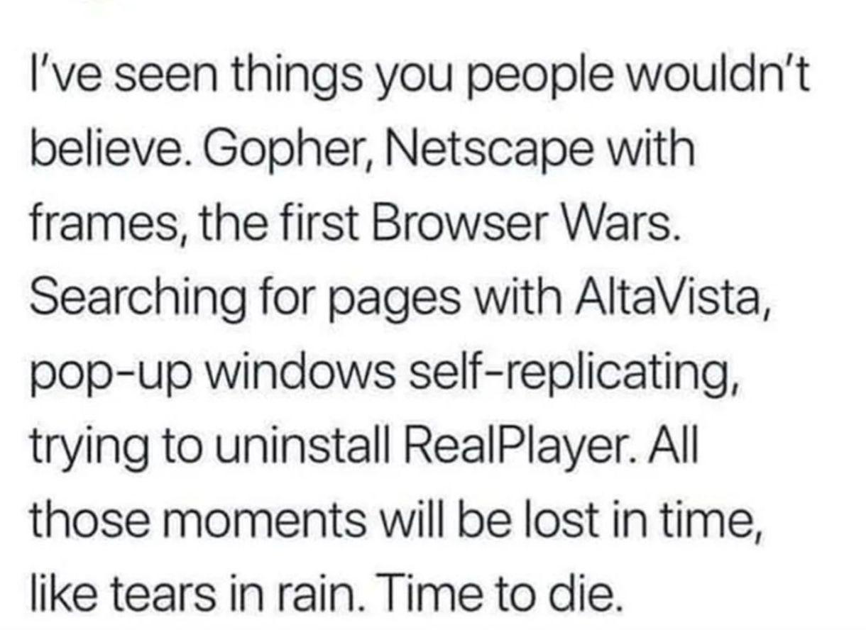 @sjvn AltaVista was brilliant, mainly because in the early 90s the internet was full of useful websites. So a search engine did not have to be sophisticated to return relevant results.